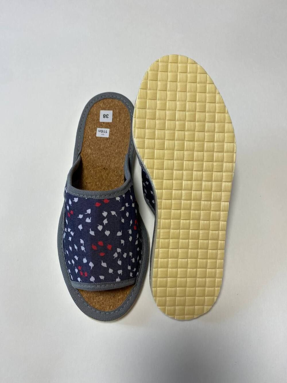 Легкие комнатные тапочки женские от бренда "Лепилов" прекрасно подойдут для ежедневного ношения дома и на даче в любое время года. Их можно предложить своим гостям, или взять с собой на отдых, в дорогу. А как приятно после тяжелого рабочего дня переобуться в тапочки с комфортной посадкой по ноге! Тапочки с открытым мыском не натирают ноги. Верхняя часть домашних тапок выполнена из качественного текстиля, который легко пропускает воздух. В таких тапочках нога не потеет и не скользит. Они спасают от холодного и мокрого пола и подходят на среднюю полноту стопы. Стелька выполнена из качественной пробки, благодаря которой их очень комфортно носить как с носком, так и на босу ногу! Подошва изготовлена из ЭВА, это легкий, упругий, эластичный и износостойкий материал. Все швы качественно обработаны производителем. Классическая модель подойдет для носки в любое время года: в осенний, весенний и летний, в зимний период, будет удобна в качестве домашних комнатных, дачных или рабочих. Широкий размерный ряд позволяет найти свою пару удобной обуви каждой женщине. Наслаждайтесь каждым моментом вместе с нами!