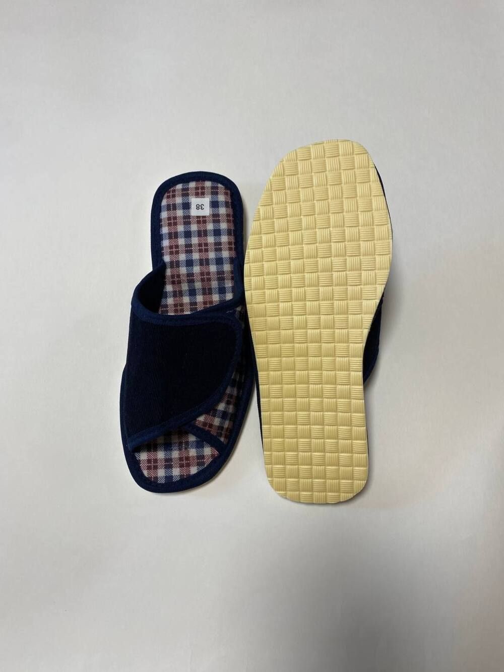 Легкие домашние женские тапочки от бренда "Лепилов" прекрасно подойдут для ежедневного ношения дома и на даче в любое время года. Стильную модель с затупленным мыском можно предложить своим гостям, или взять с собой на отдых, в дорогу. А как приятно после тяжелого рабочего дня переобуться в тапочки с комфортной посадкой по ноге! Благодаря липучке они подходят на стопу с любой полнотой и подъёмом! Тапочки с открытым мыском не натирают ноги. Верхняя часть домашних тапок выполнена из качественного текстиля, который легко пропускает воздух. В таких тапочках нога не потеет и не скользит. Стелька из рогожки обладает прочностью и долговечностью! Они спасают от холодного и мокрого пола. Их можно носить с носком и на босу ногу. Подошва изготовлена из ЭВА, это легкий, упругий, эластичный и износостойкий материал. Все швы качественно обработаны производителем. Классическая модель подойдет для носки в любое время года: в осенний, весенний, летний и зимний период. Широкий размерный ряд позволяет найти свою пару удобной обуви каждой женщине. Наслаждайтесь каждым моментом вместе с нами!