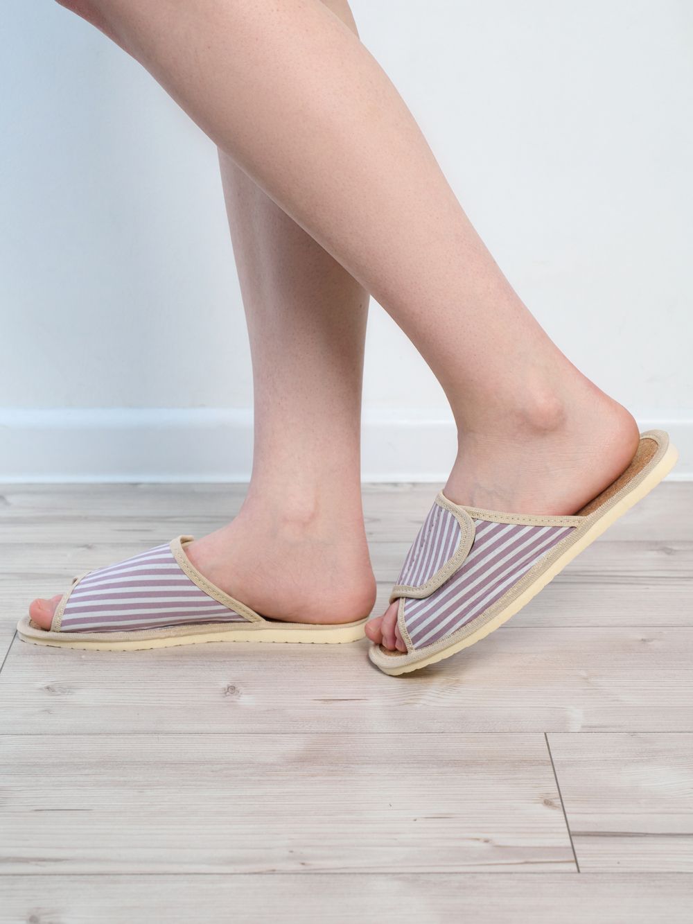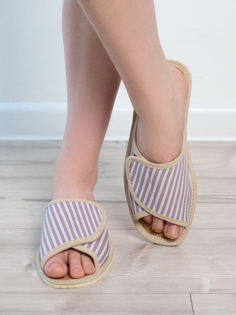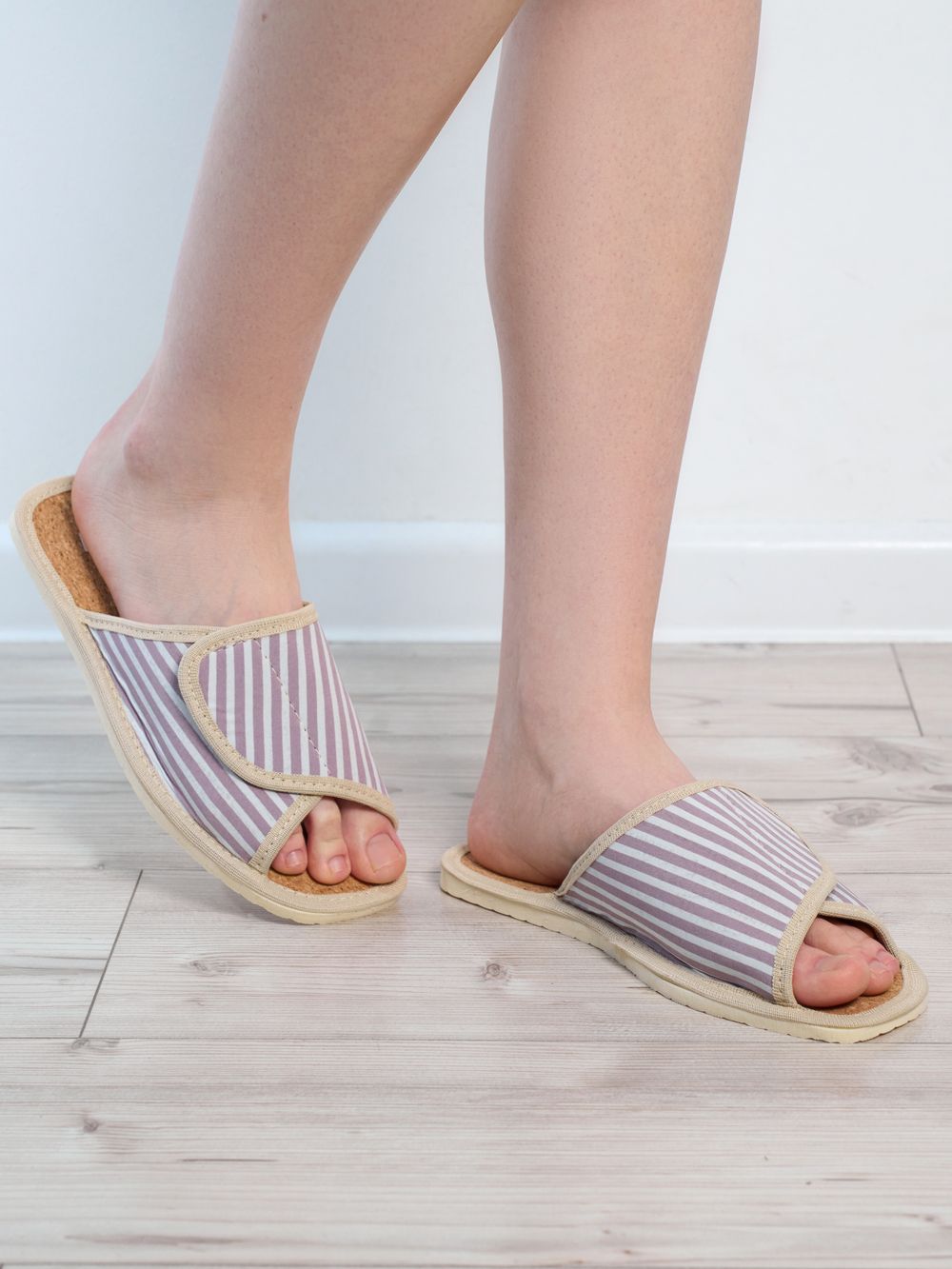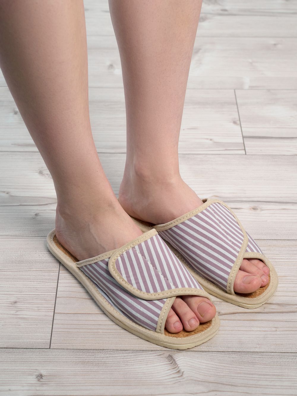 Легкие домашние женские тапочки от бренда "Лепилов" прекрасно подойдут для ежедневного ношения дома и на даче в любое время года. Стильную модель с затупленным мыском можно предложить своим гостям, или взять с собой на отдых, в дорогу. А как приятно после тяжелого рабочего дня переобуться в тапочки с комфортной посадкой по ноге! Благодаря липучке они подходят на стопу с любой полнотой и подъёмом! Тапочки с открытым мыском не натирают ноги. Верхняя часть домашних тапок выполнена из качественного текстиля, который легко пропускает воздух. В таких тапочках нога не потеет и не скользит. Стелька из пробки обладает прочностью и долговечностью! Они спасают от холодного и мокрого пола. Их можно носить с носком и на босу ногу. Подошва изготовлена из ЭВА, это легкий, упругий, эластичный и износостойкий материал. Все швы качественно обработаны производителем. Классическая модель подойдет для носки в любое время года: в осенний, весенний, летний и зимний период. Широкий размерный ряд позволяет найти свою пару удобной обуви каждой женщине. Наслаждайтесь каждым моментом вместе с нами!