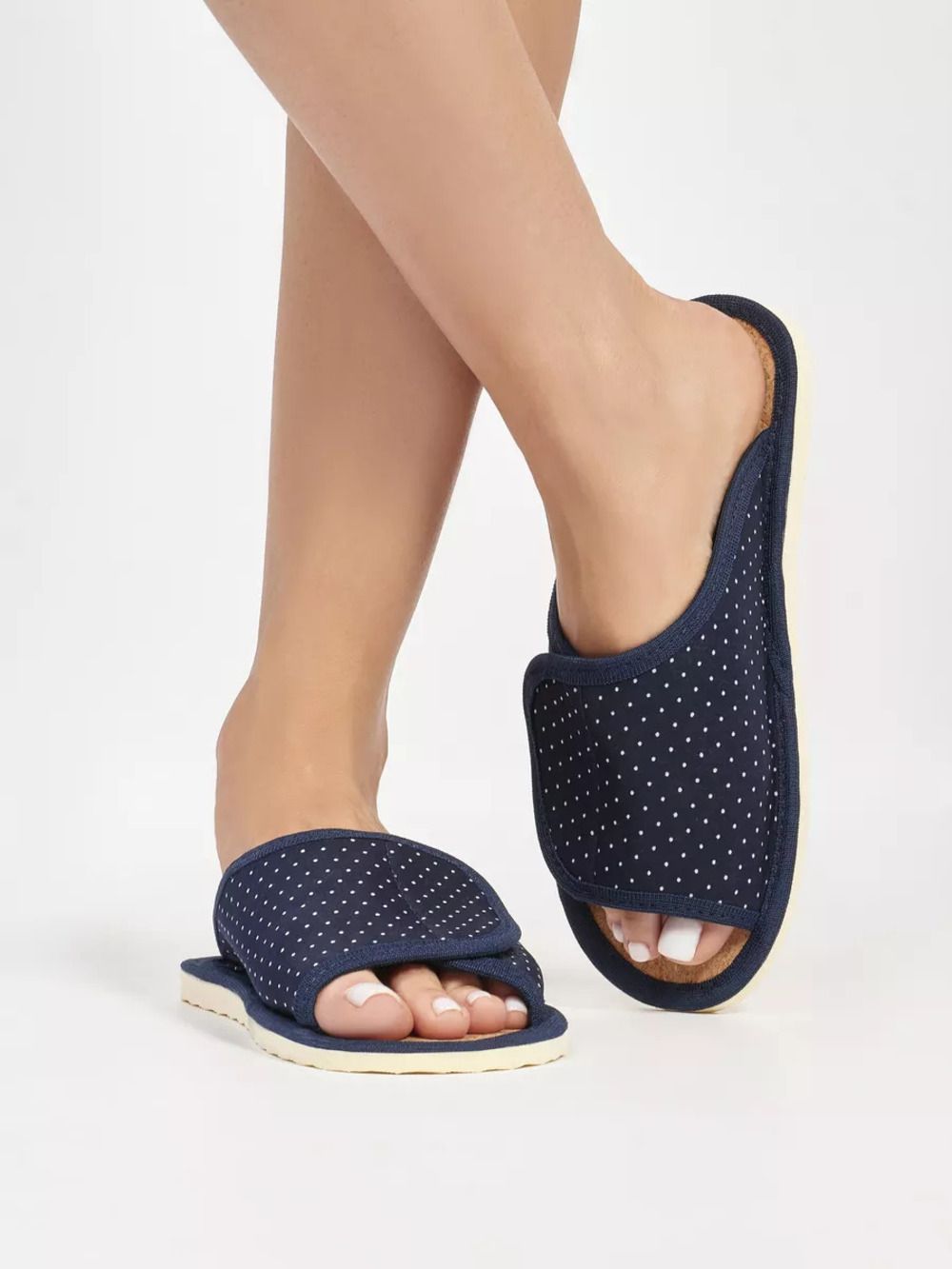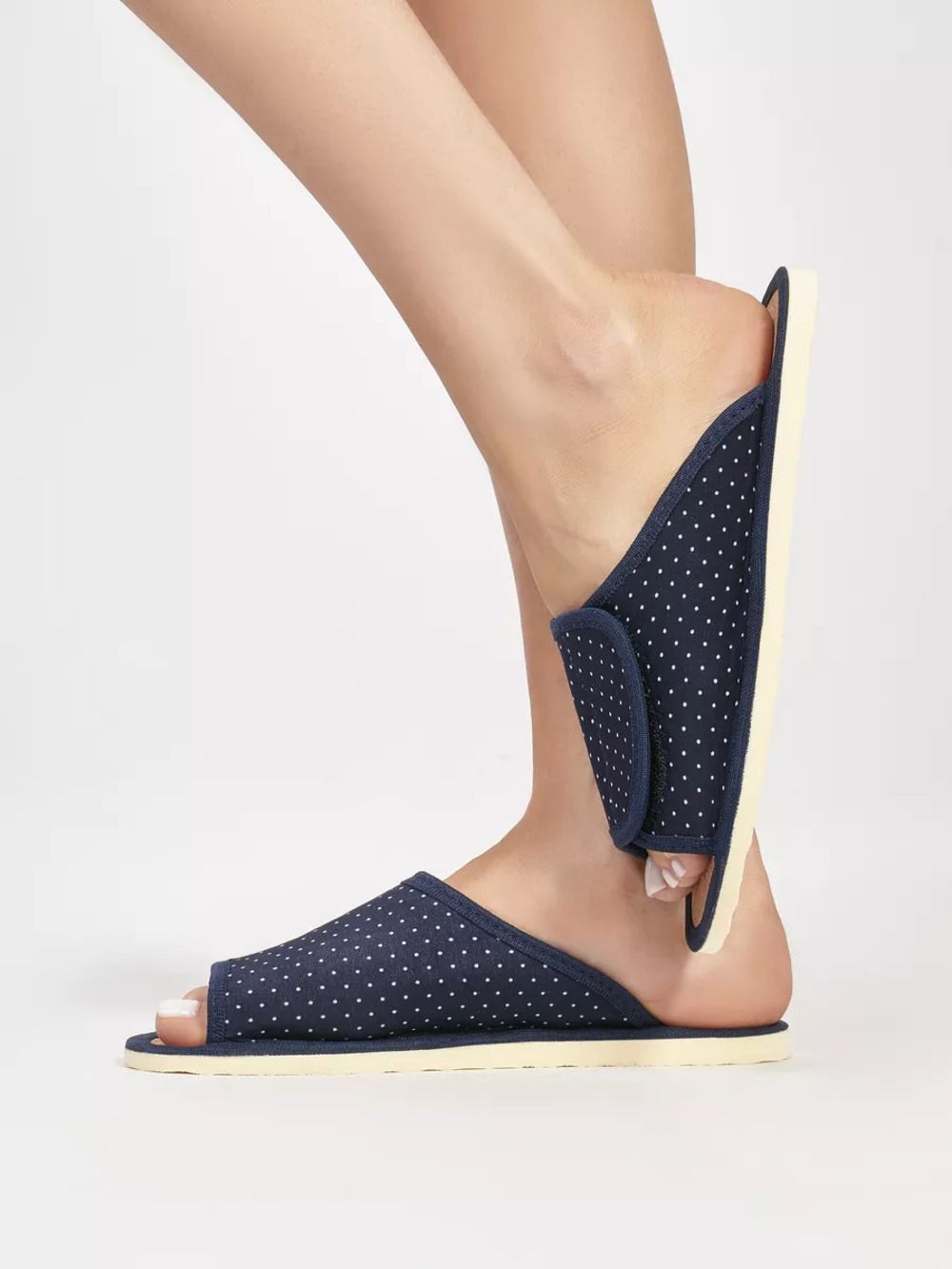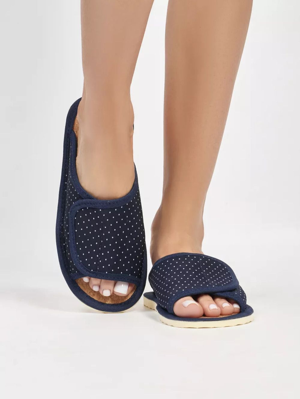 Легкие комнатные тапочки женские от бренда "Лепилов" прекрасно подойдут для ежедневного ношения дома и на даче в любое время года. Их можно предложить своим гостям, или взять с собой на отдых, в дорогу. А как приятно после тяжелого рабочего дня переобуться в тапочки с комфортной посадкой по ноге! Благодаря липучке они подходят на стопу с любой полнотой и подъёмом! Тапочки с открытым мыском не натирают ноги. Верхняя часть домашних тапок выполнена из качественного текстиля, который легко пропускает воздух. В таких тапочках нога не потеет и не скользит. Стелька выполнена из качественной пробки, благодаря которой их очень комфортно носить как с носком, так и на босу ногу! Они спасают от холодного и мокрого пола. Подошва изготовлена из ЭВА, это легкий, упругий, эластичный и износостойкий материал. Все швы качественно обработаны производителем. Классическая модель подойдет для носки в любое время года: в осенний, весенний и летний, в зимний период, будет удобна в качестве домашних комнатных, дачных или рабочих. Широкий размерный ряд позволяет найти свою пару удобной обуви каждой женщине. Наслаждайтесь каждым моментом вместе с нами!