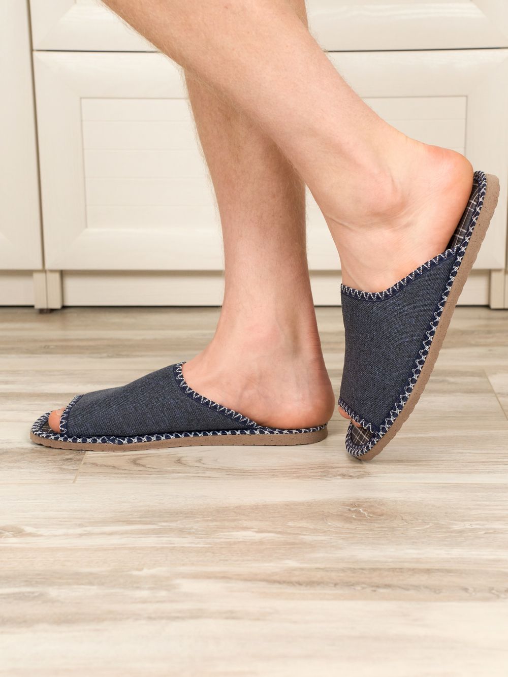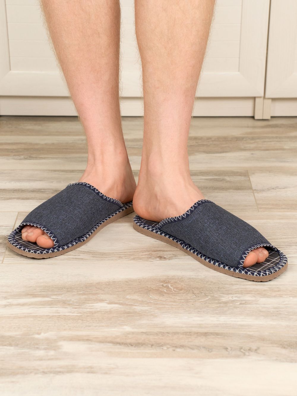 Тапочки мужские арт.117 рогожка - син рогож клет сер бел