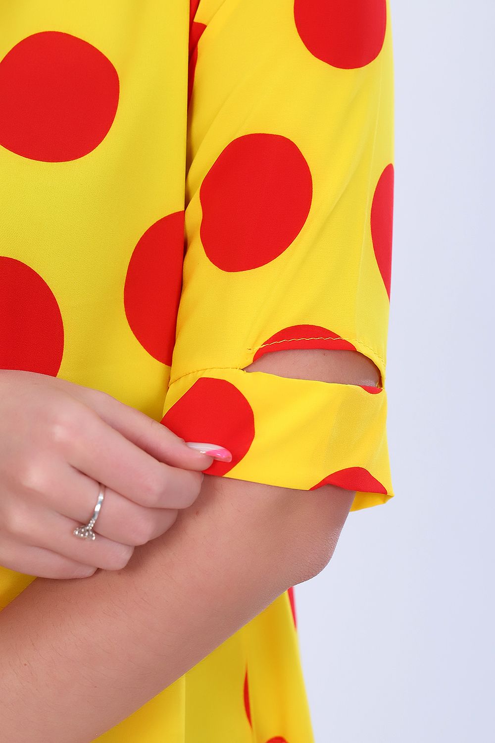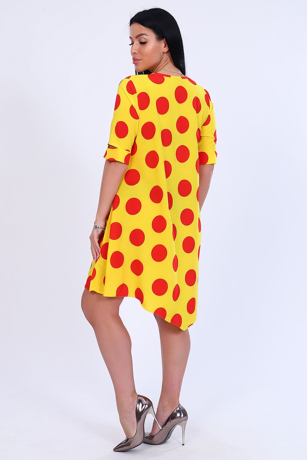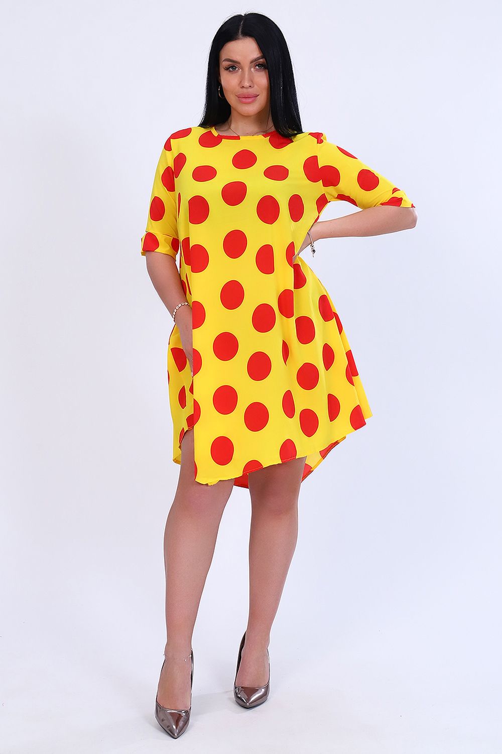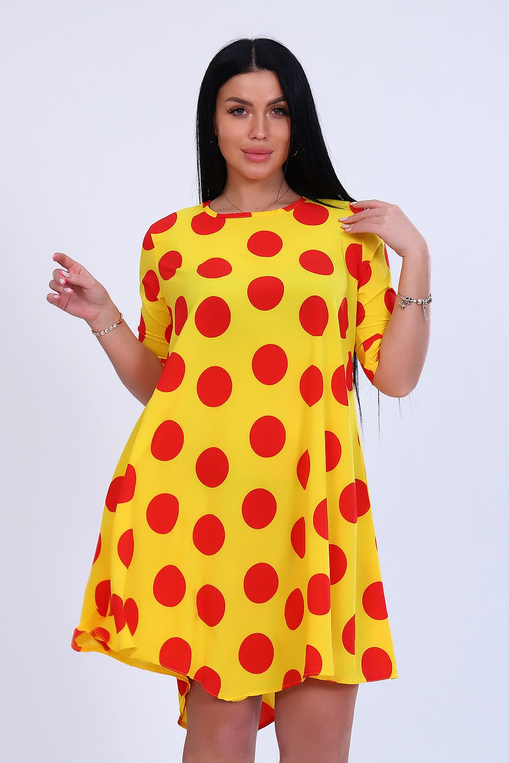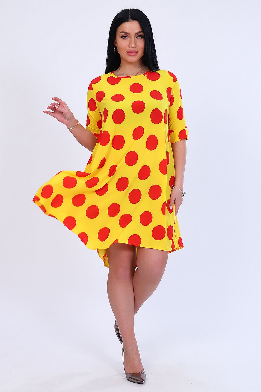 Платье женское расклешенного силуэта, округлый воротник, короткий рукав, задняя полочка длиннее передней. Легкое и удобное.