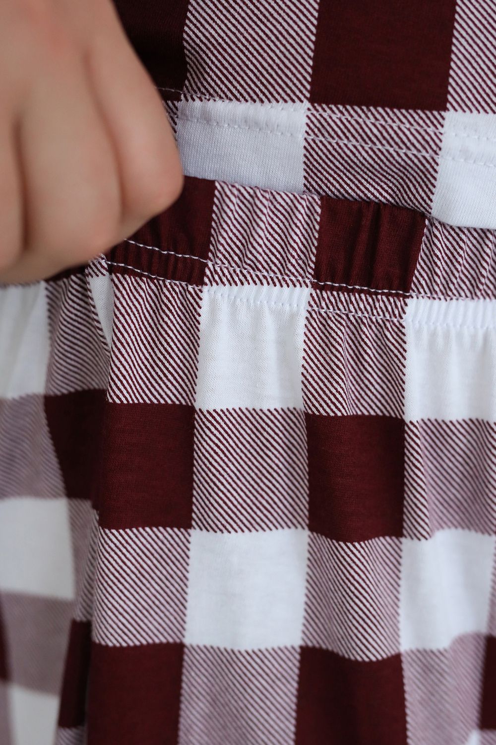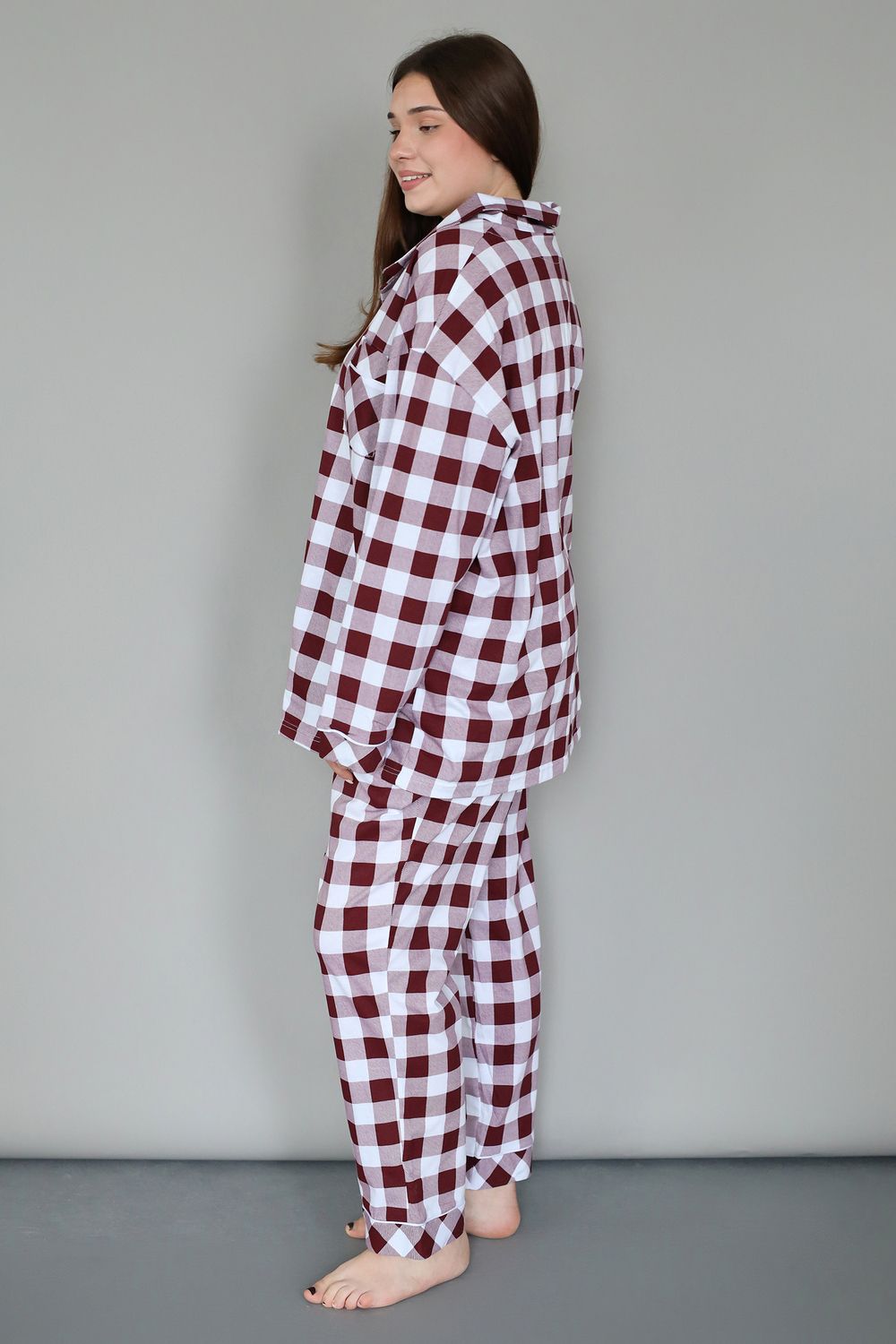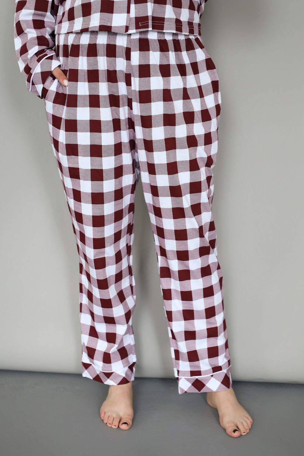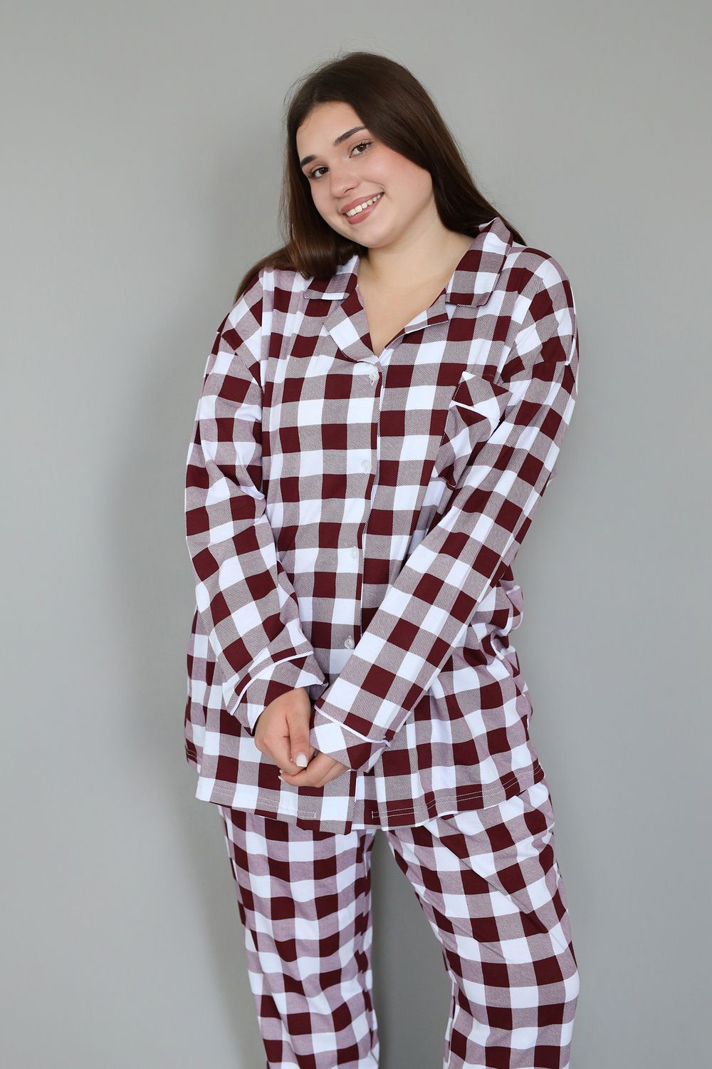 Теплая пижама больших размеров с рубашкой и штанами - бордовый