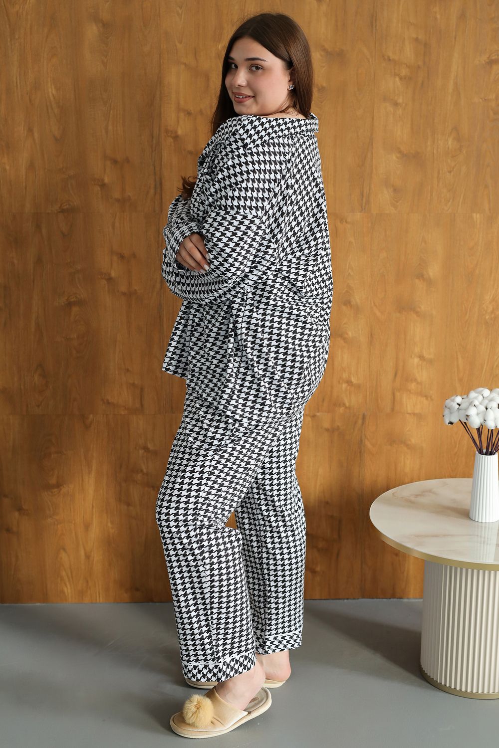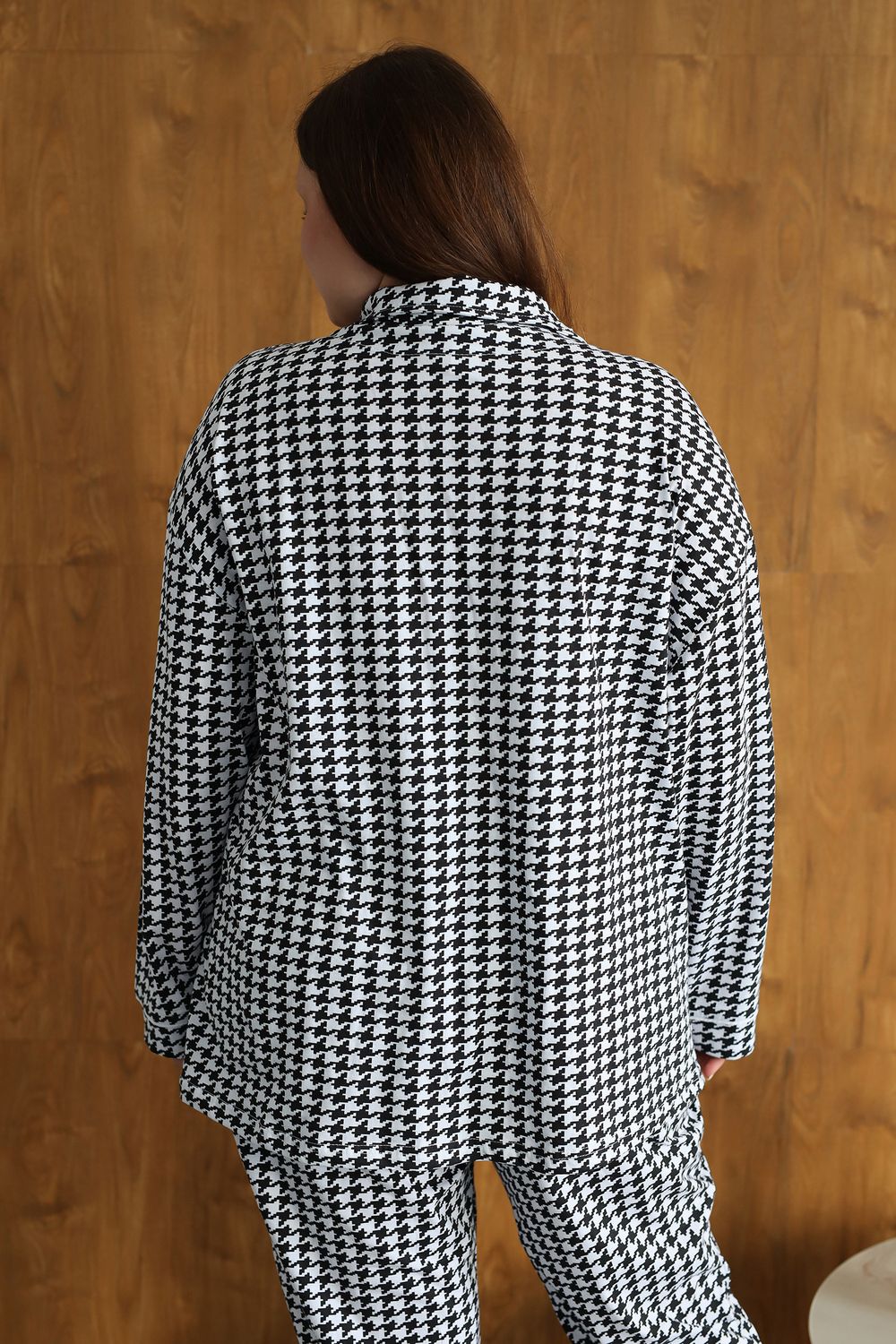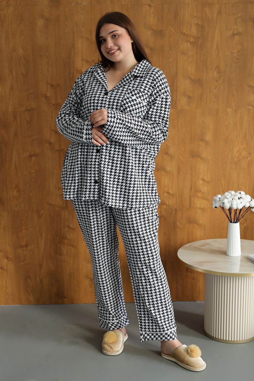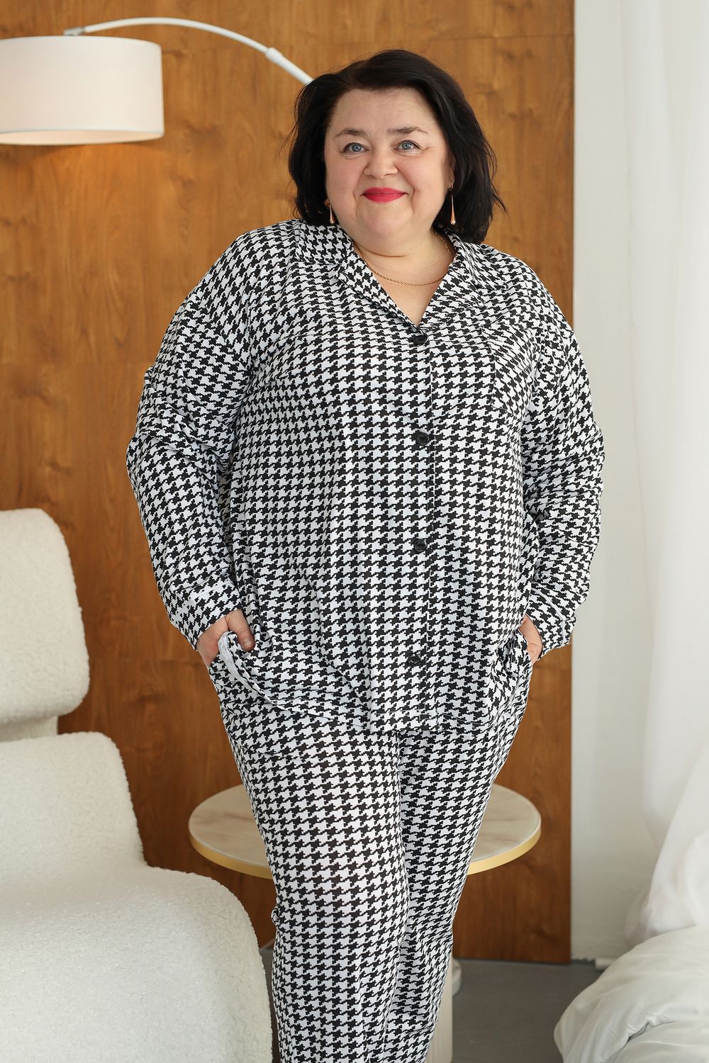 Теплая пижама больших размеров с рубашкой и штанами - черно-белый