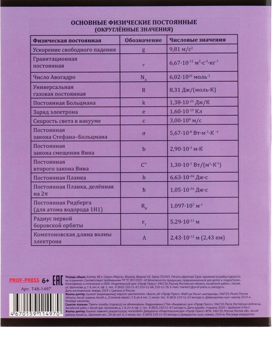 Тетрадь КЛЕТКА 48л. ФИЗИКА «МАНГА» (Т48-1497) стандарт, твин-лак