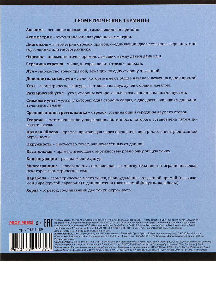 Тетрадь КЛЕТКА 48л. ГЕОМЕТРИЯ «МАНГА» (Т48-1489) стандарт, твин-лак