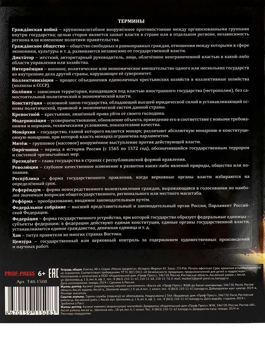 На протяжении всего обучения в школе главным помощником для ученика является тетрадь! Новая серия "Магия предмета" — это серия из 16 предметных тетрадей, тактильный и визуальный дизайн которых притягивает к более углубленному изучению предметов. Магическое мерцание фольги и блеск твин-лака на отдельных элементах обложки особенно эффектно выглядит на черном фоне. Внутри расположен справочный материал с подсказками по соответствующему школьному предмету. Обложка: мелованный целлюлозный картон, печать по холодной фольге, твин-лак. Внутренний блок: офсет 60 г/м 100 % белизны, 48 листов. Линовка: клетка.