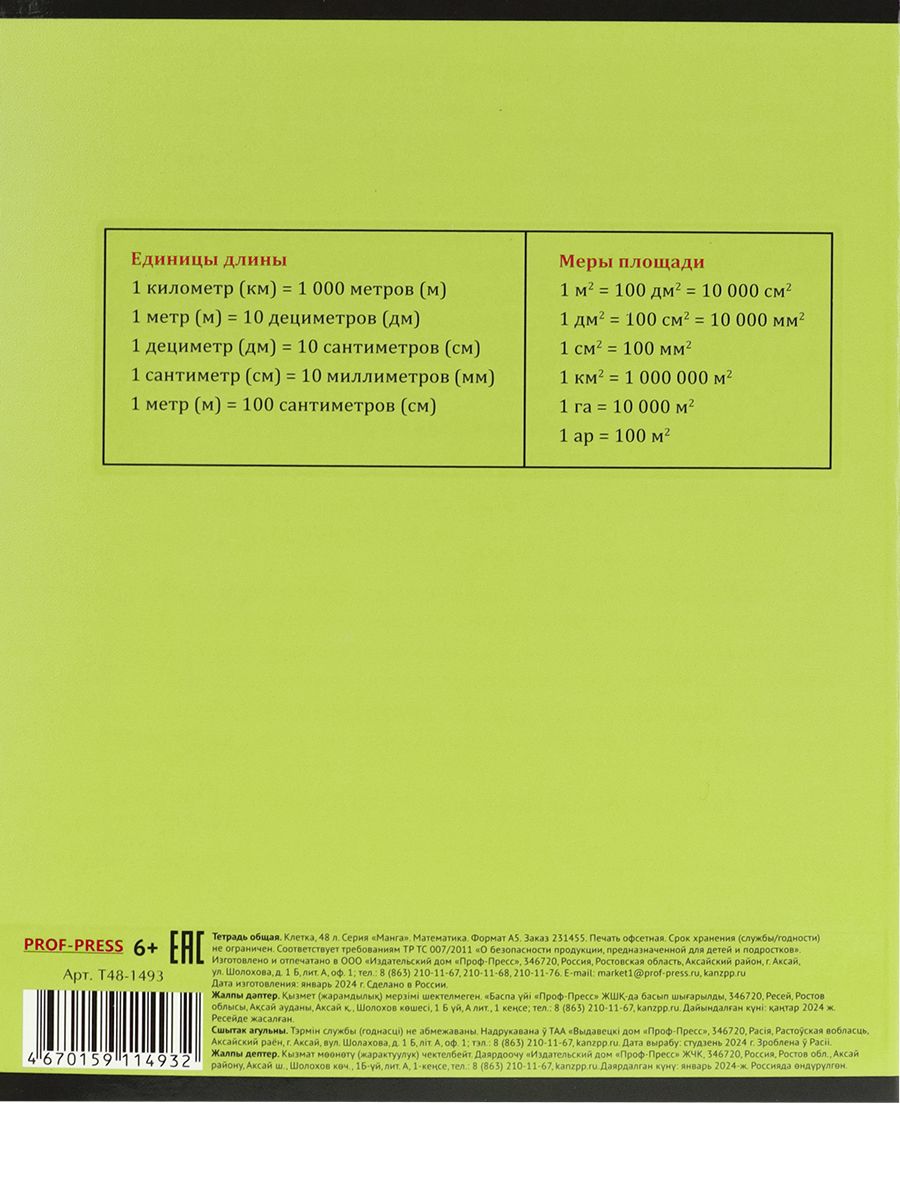 Тетрадь КЛЕТКА 48л. МАТЕМАТИКА «МАНГА» (Т48-1493) стандарт, твин-лак
