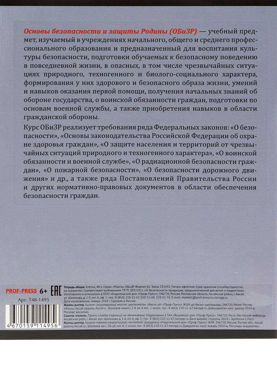 Тетрадь КЛЕТКА 48л. ОБиЗР «МАНГА» (Т48-1495) стандарт, твин-лак