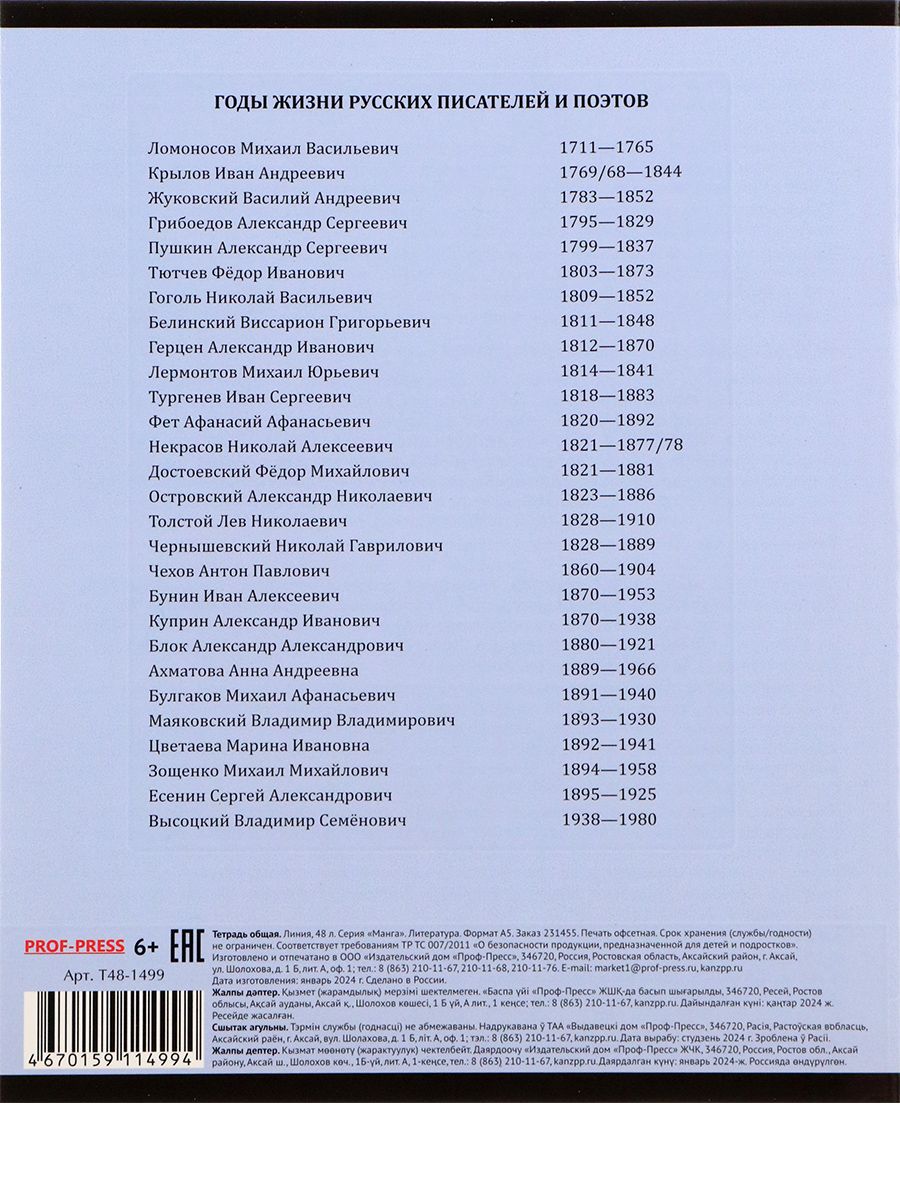 Тетрадь ЛИНИЯ 48л. ЛИТЕРАТУРА «МАНГА» (Т48-1499) стандарт, твин-лак