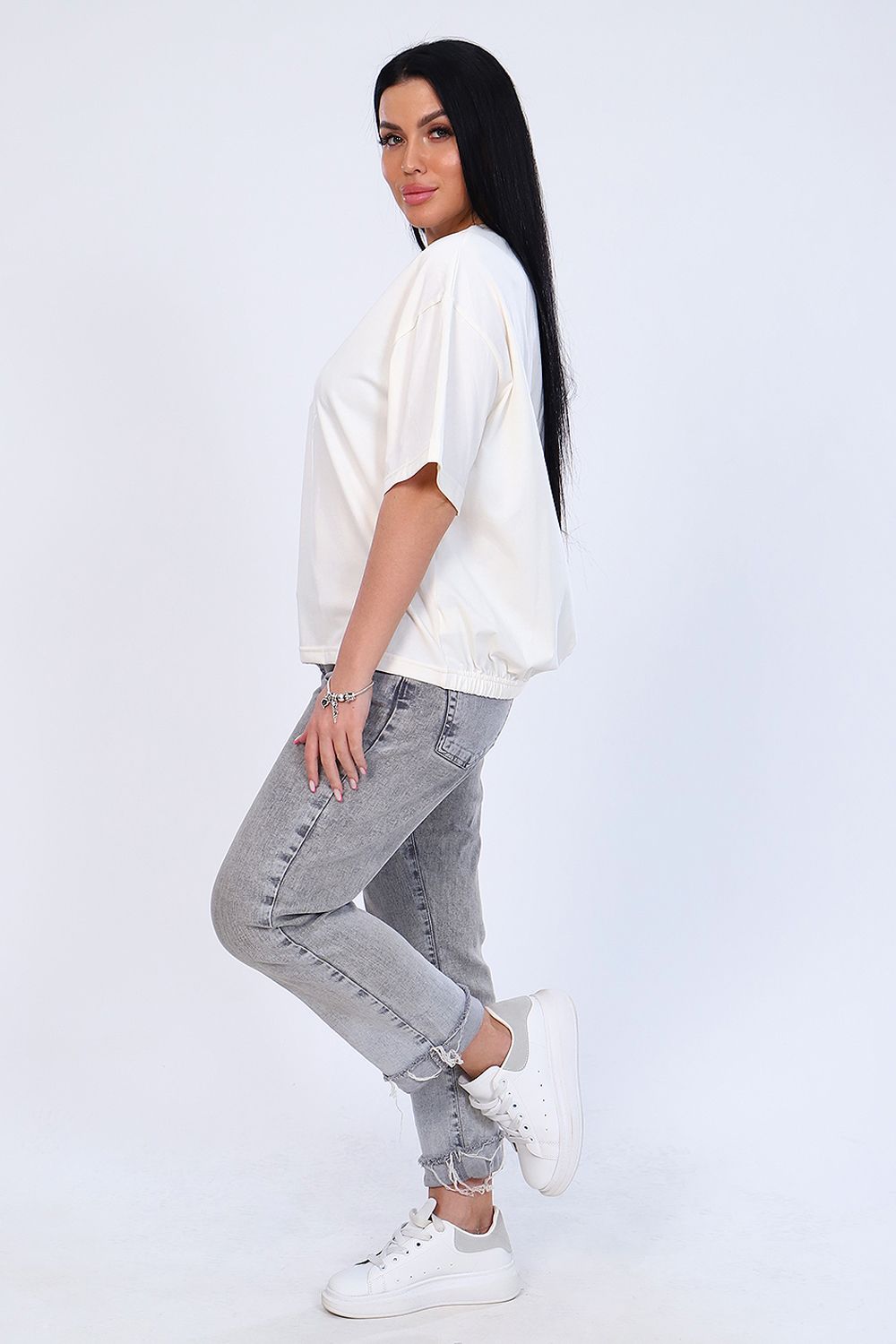 Футболка с нежным принтом из мягкого трикотажа с лайкрой высокого качества пенье. Модель свободного силуэта, круглая горловина обработана обтачкой, короткий широкий рукав, низ спинки слегка удлинён и собран на широкой резинке. Удобная и во многом универсальная вещь не только идеально дополняет комплекты одежды повседневного стиля, но и отлично комбинируется со строгими, классическими нарядами. Модель отлично смотрится на любом типе фигуры. Умеренный оверсайз - очень модно и практично, сочетается с джинсами, юбкой, в офис под кардиган или пиджак. Длина рукава в таблице измерений указана от плечевого шва.