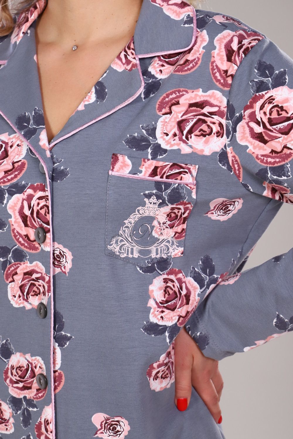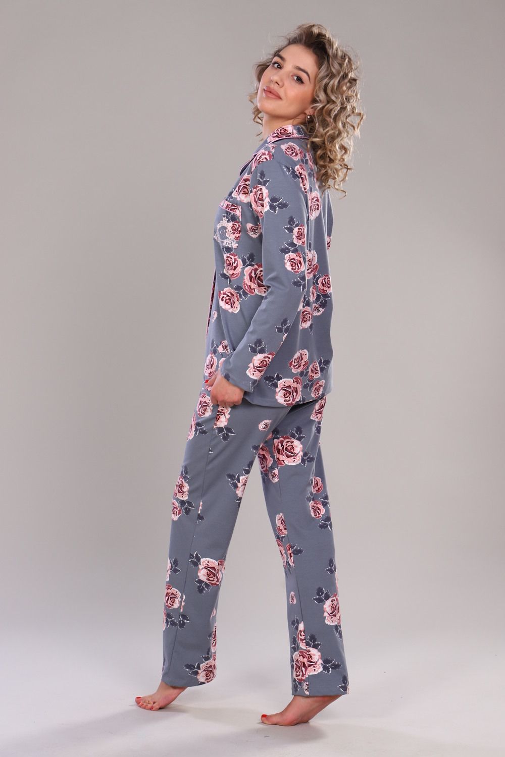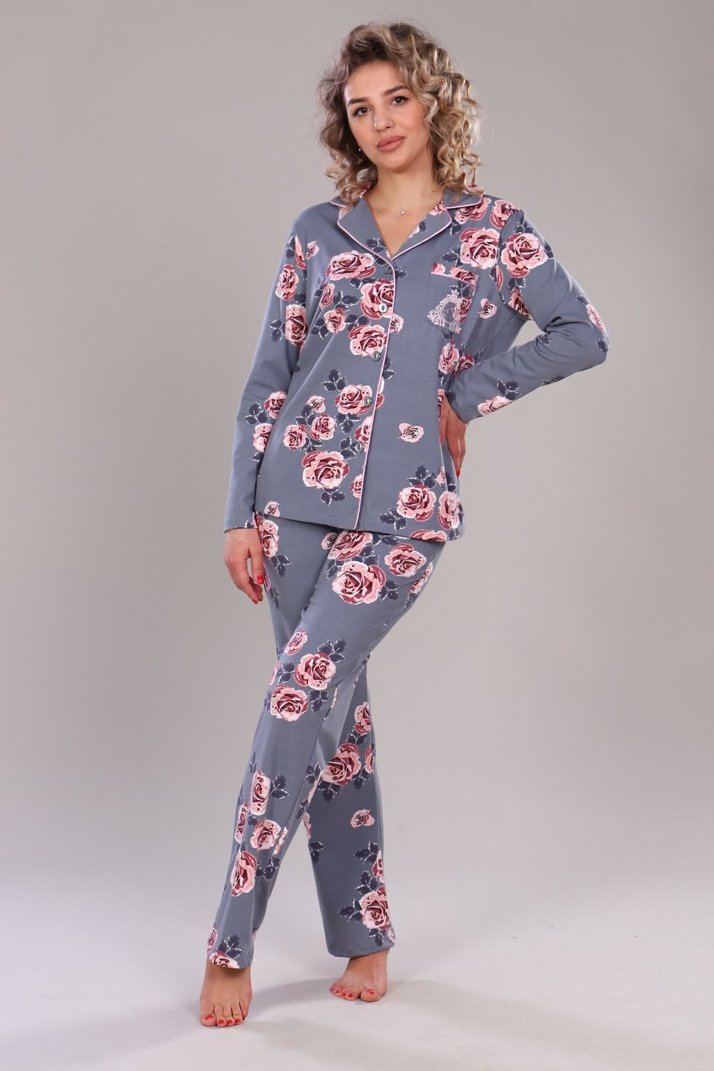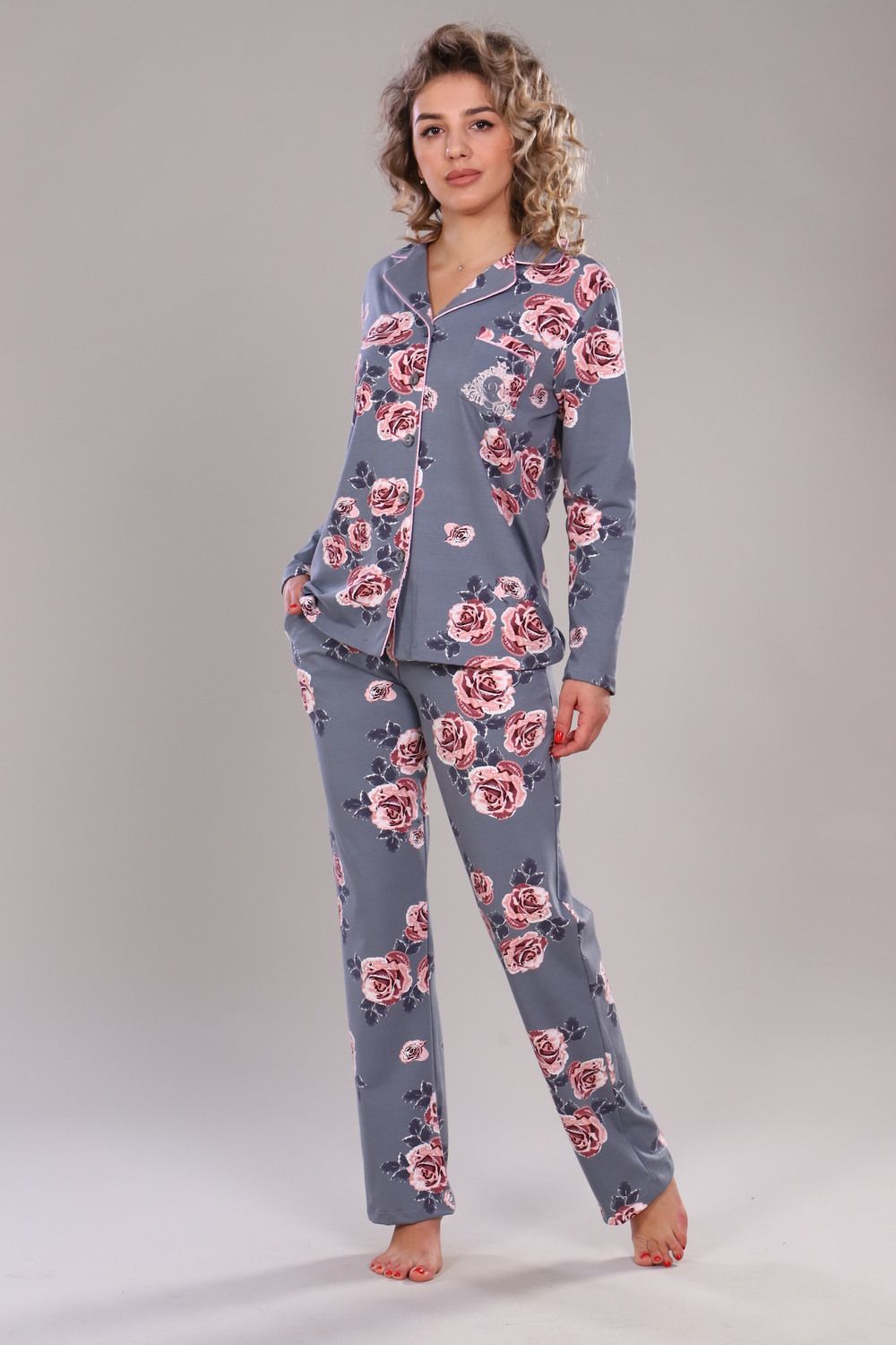 Уютная, домашняя пижама их хлопка свободного силуэта. Кофта до середины бедра, с декоративной печатью на кармашке. Брюки на резинке прямого, свободного кроя.