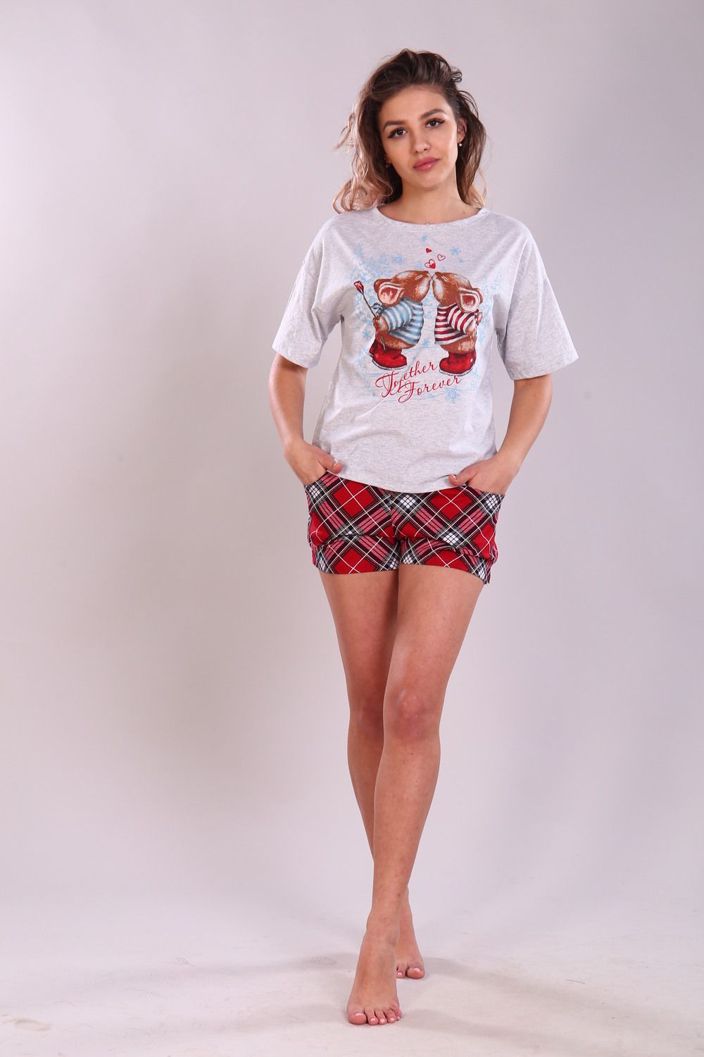 Пижама с футболкой и шортами свободного силуэта. Футболка со спущенным рукавом и декоративной печатью в стиле шелкографии. Шорты на резинке с карманами.