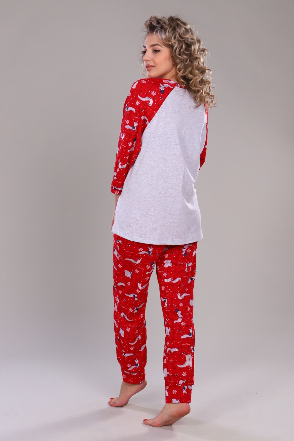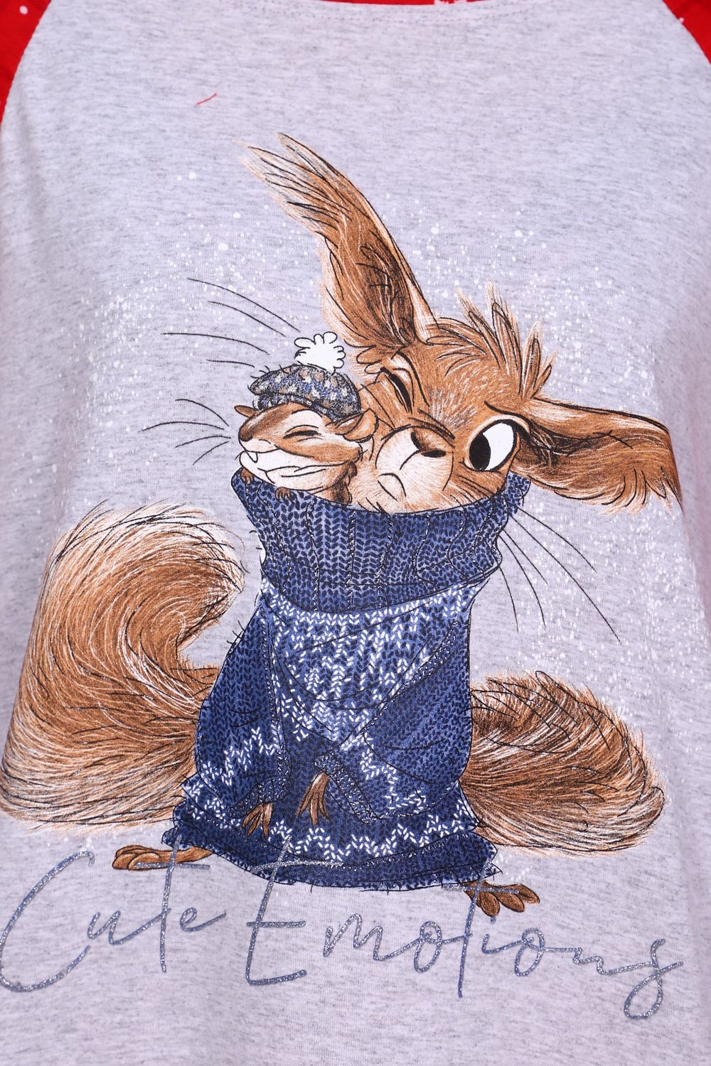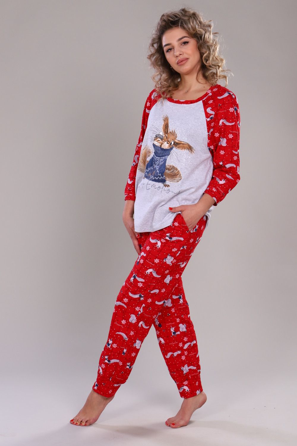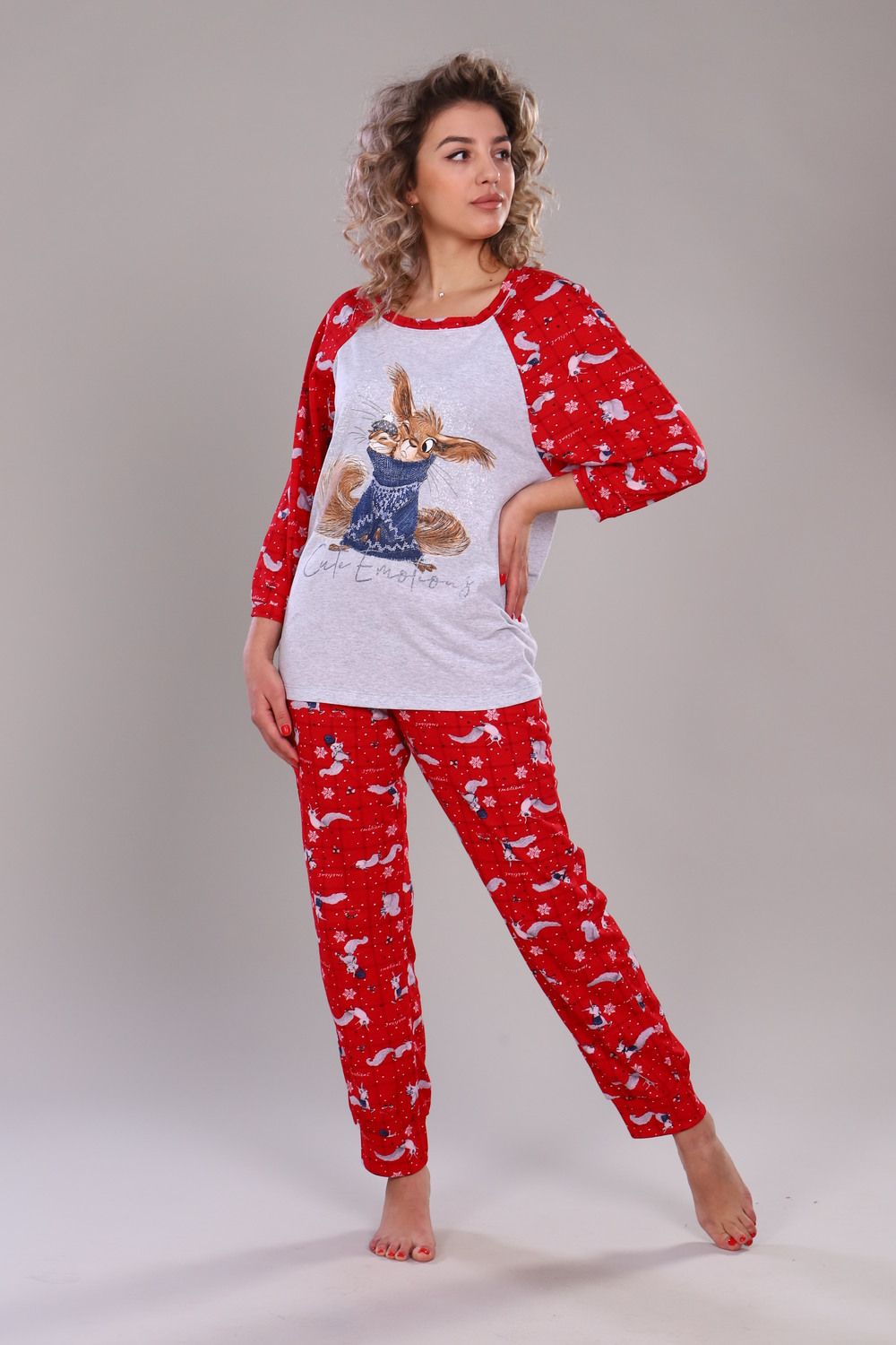 Комплект состоит из брюк и кофты. Брюки длинные с манжетом внизу. Кофта с укороченным рукавом реглан на манжете, имеет декоративную печать в стиле шелкографии с добавлением глитерра.