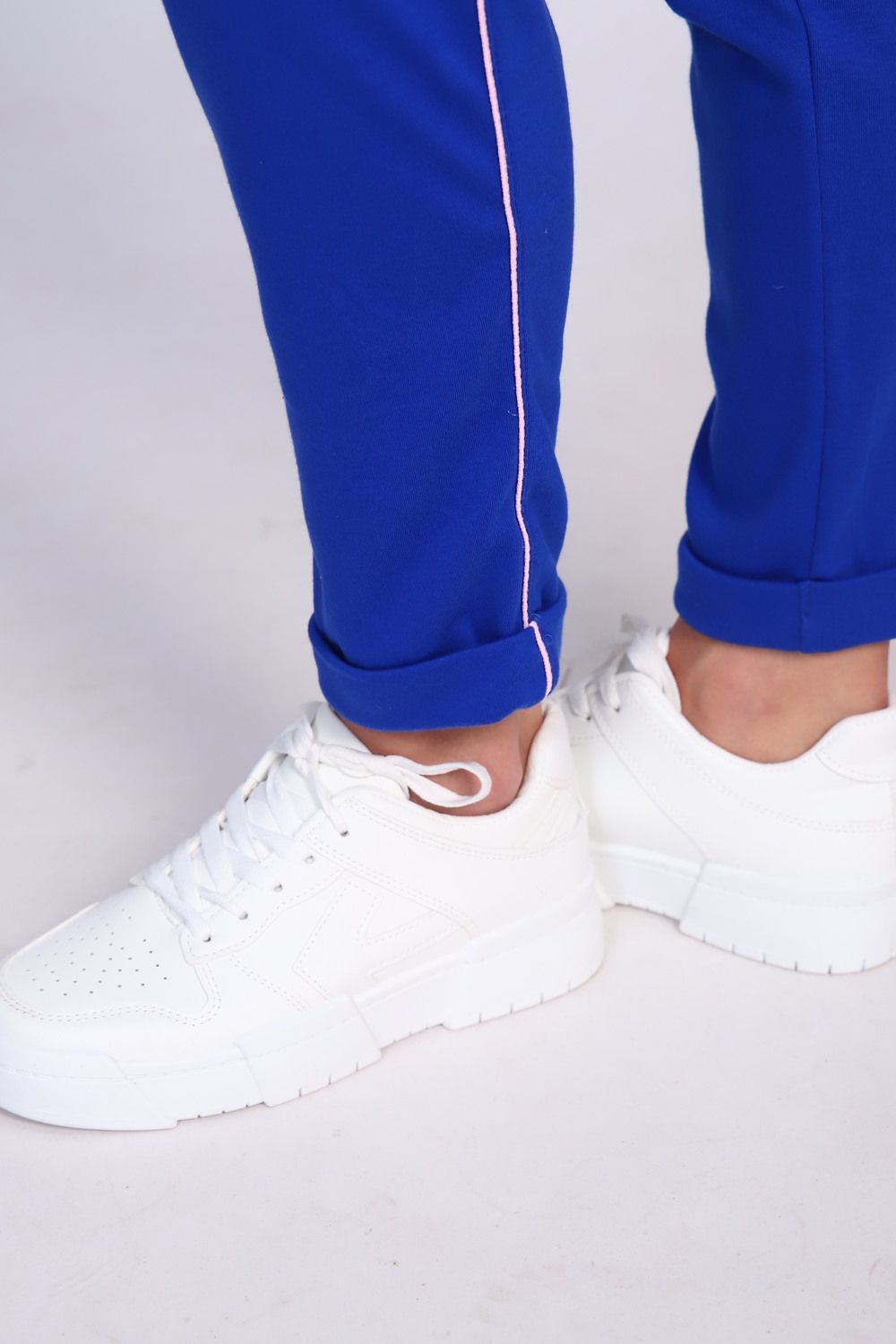 Милая пижама состоящая из футболки и брюк свободного силуэта. Футболка с отделкой кантом по горловине и рукаву, и печатью в стиле шелкографии на полочке и спинке. Зауженные брюки на резинке с карманами, имеют внизу манжет.