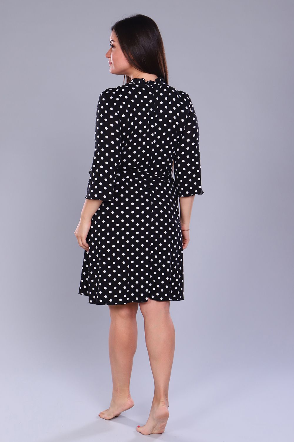 Халат из вискозы на запах, рукав чуть расклешенный 34,длина до колена, по груди рюши. Очень приятный к телу.