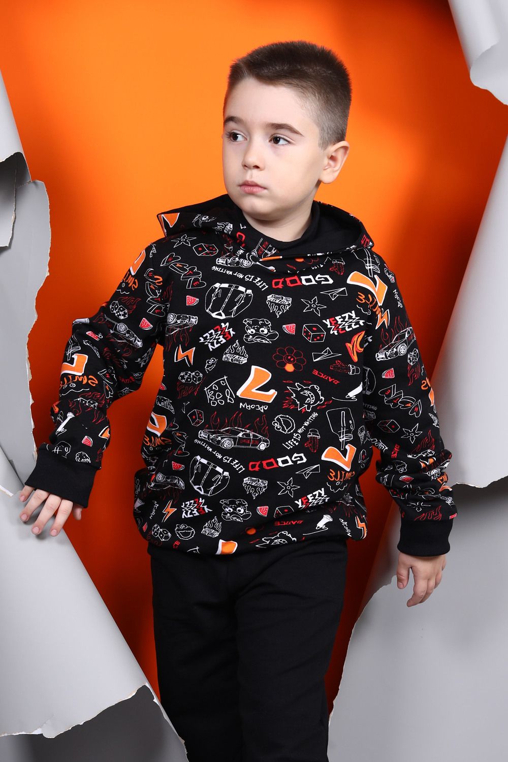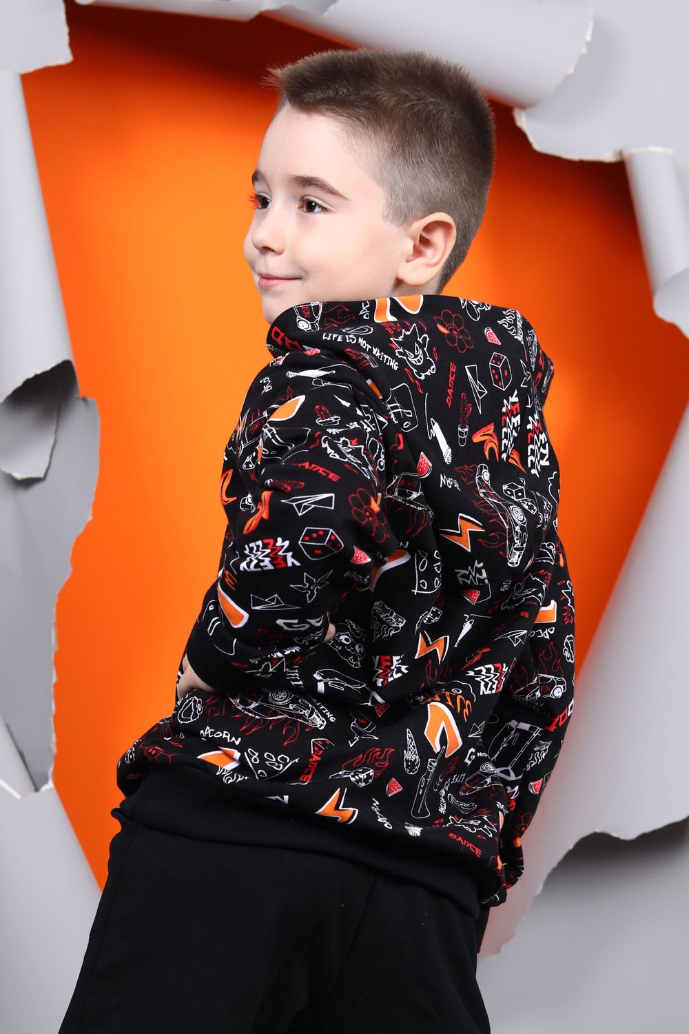 Толстовка детская с капюшоном. В данной модели на горловине присутствует воротник стойка выполненный из эластичного трикотажного плотна кашкорсе. Низ изделия и манжеты так же обработаны кашкорсе. Прекрасный вариант для детского активного отдыха.