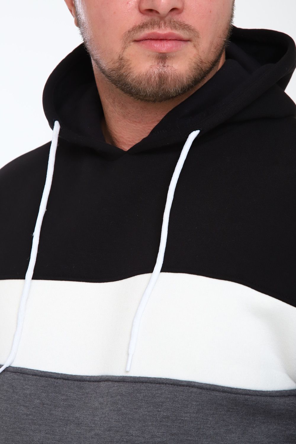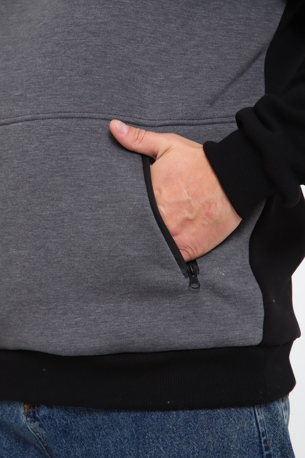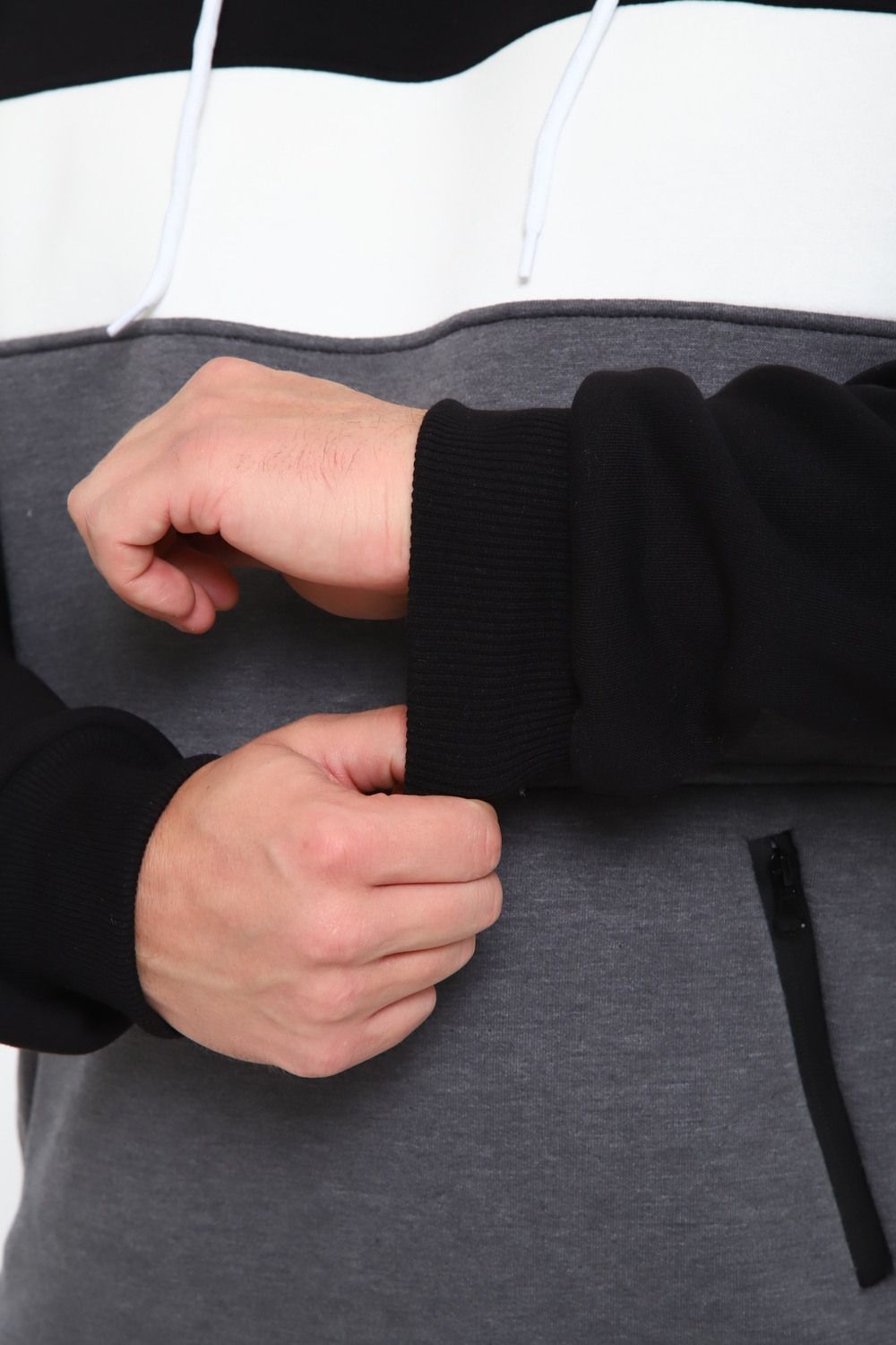 Стильная мужская толстовка с капюшоном выполнена из футера трёх нитки пенье компакт. Она имеет начес, что делает её идеальным выбором для прохладных дней. Капюшон регулируется шнурком. По бокам расположены вместительные карманы на молнии (кенгуру). Доступна в нескольких базовых расцветках с контрастными вставками по типу колор-блок. Первая стирка с изнаночной стороны при 30 градусах. При первой стирке ворс начеса полиняет. Это нормально.