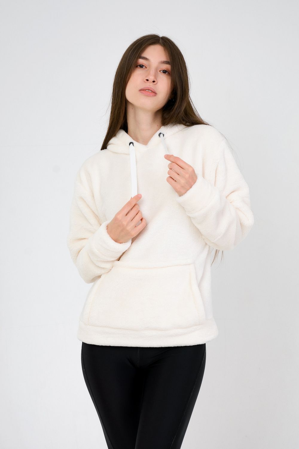 Толстовка женская с капюшоном и карманом-кенгуру. Изделие выполнено из однотонного велсофта в трех цветах. Теплая, приятная к телу модель, отличный вариант на каждый день.