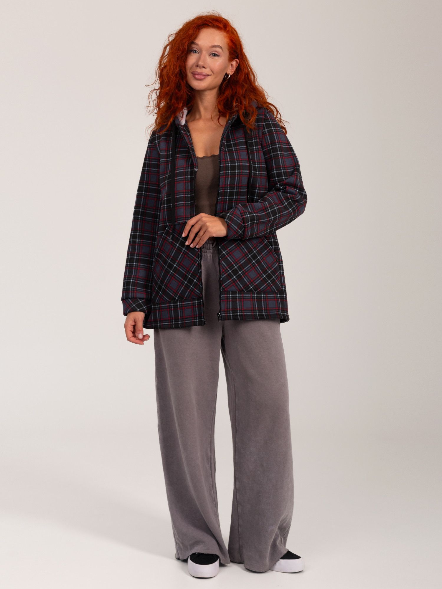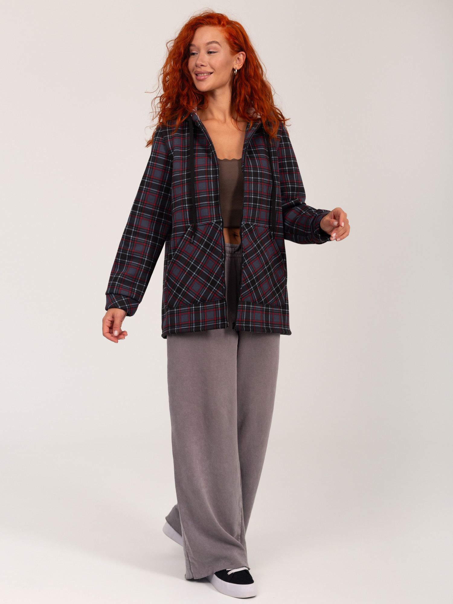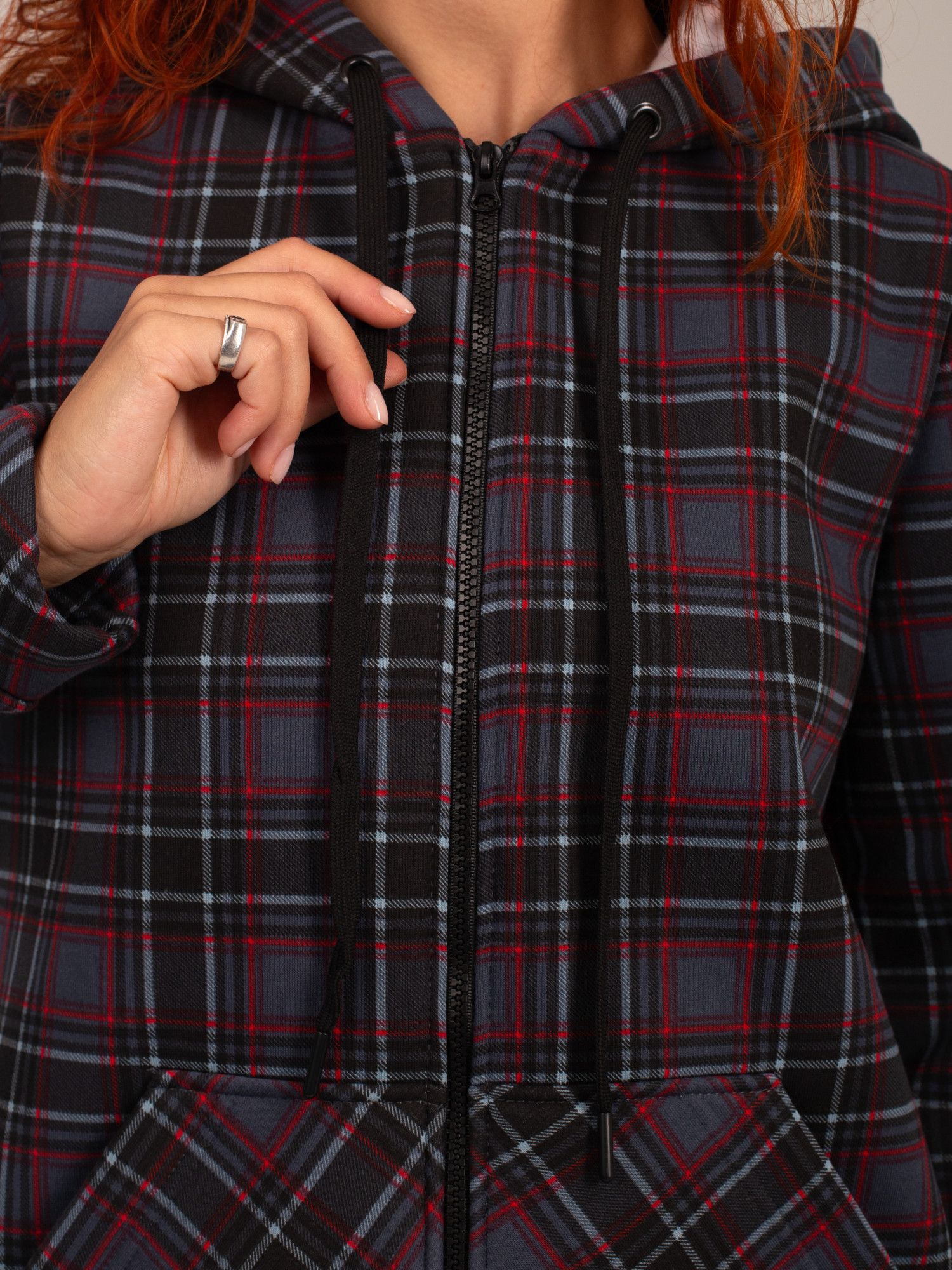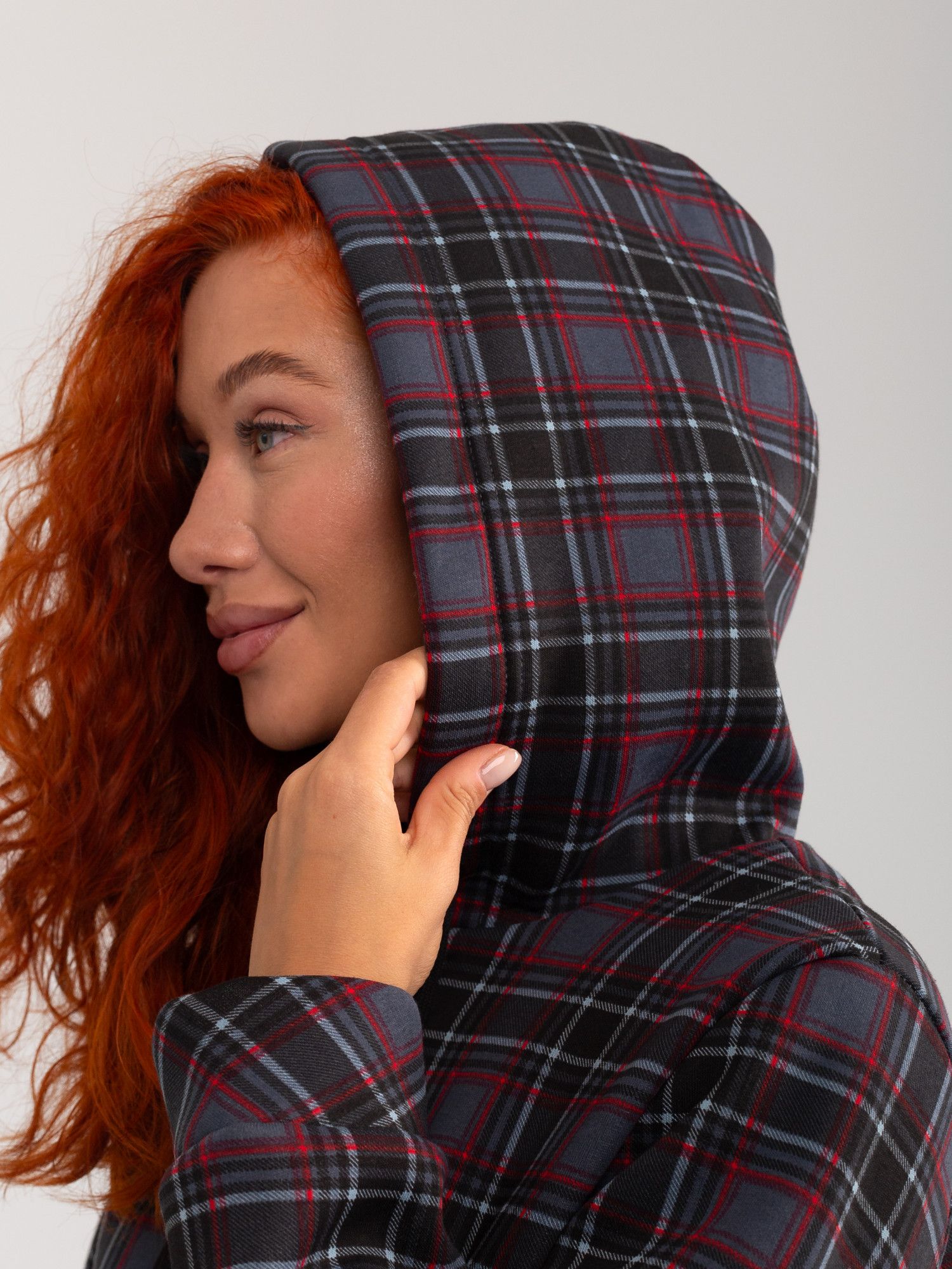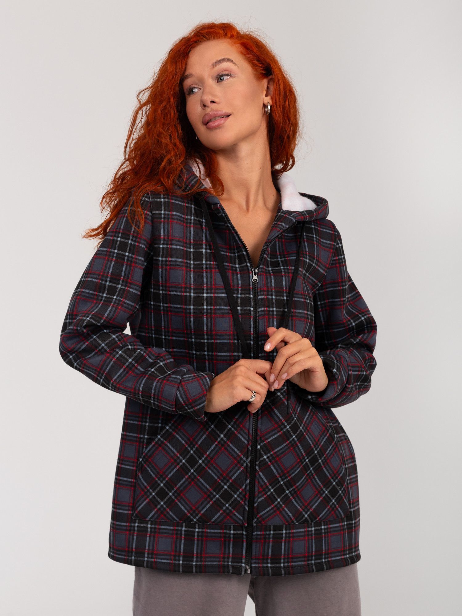 Толстовка женская футер начес 3-х нитка "РОКСАНА" СЕРАЯ КЛЕТКА