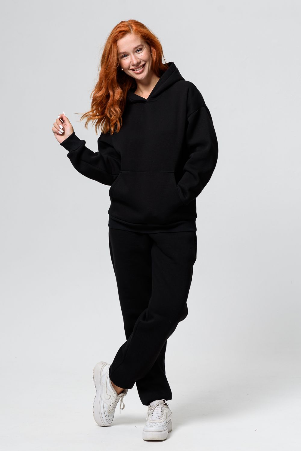 Утепленная толстовка с начесом, свободного кроя оверсайз, с длинным рукавом, объемным капюшоном и удобным карманом «кенгуру» – незаменимая, уже классическая повседневная вещь, которую можно сочетать с любой одеждой для создания стильных образов. Длина рукава измеряется от горловины.
