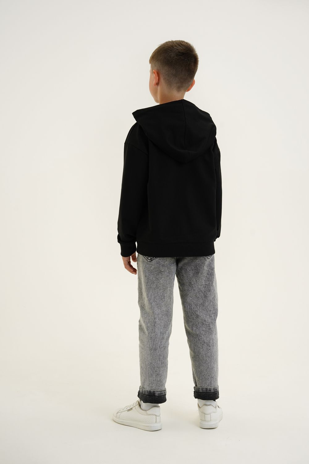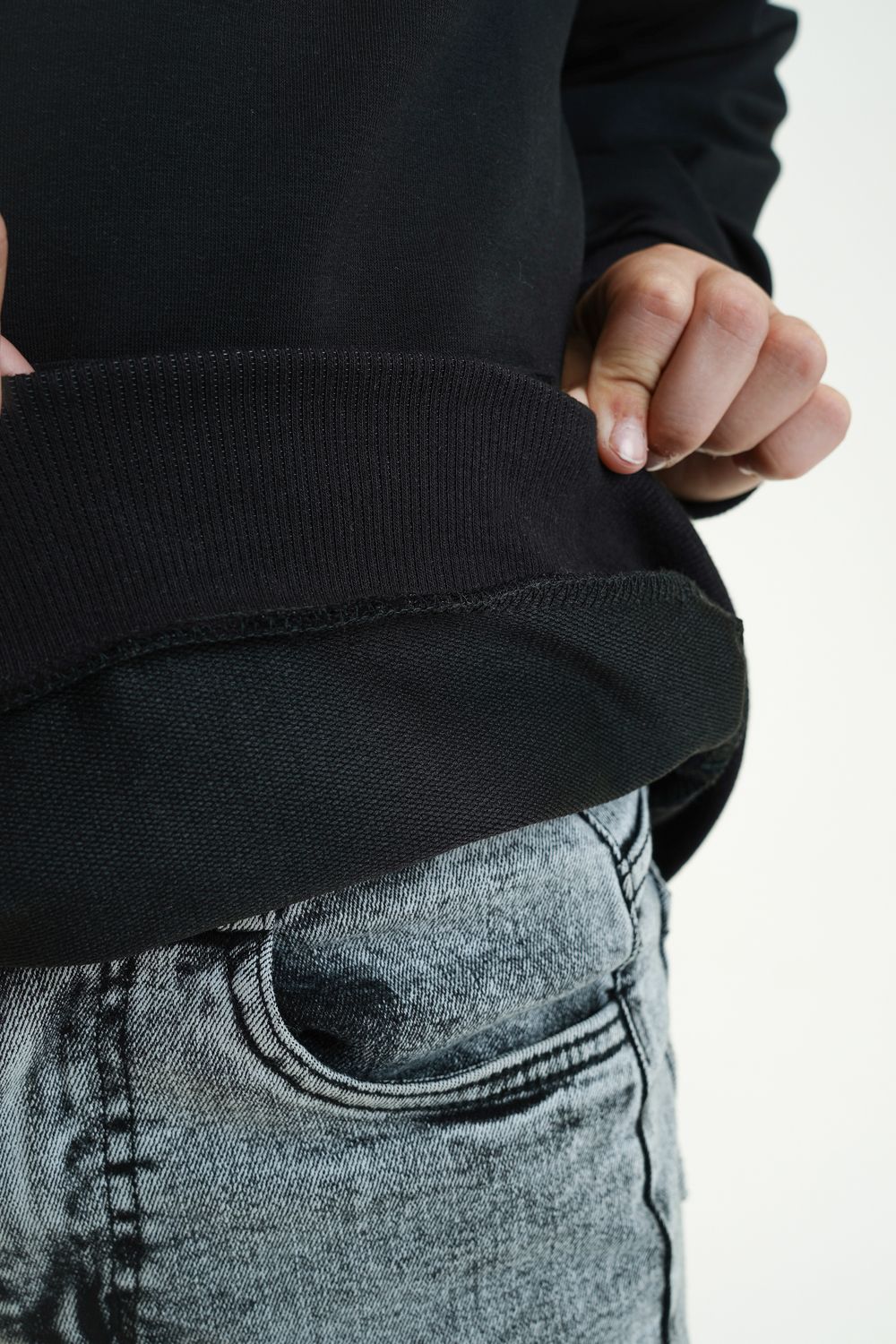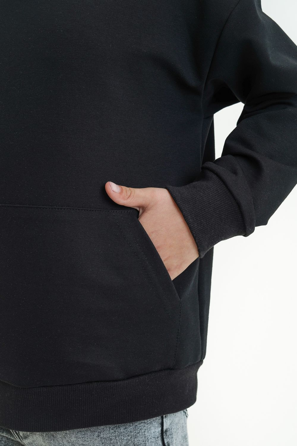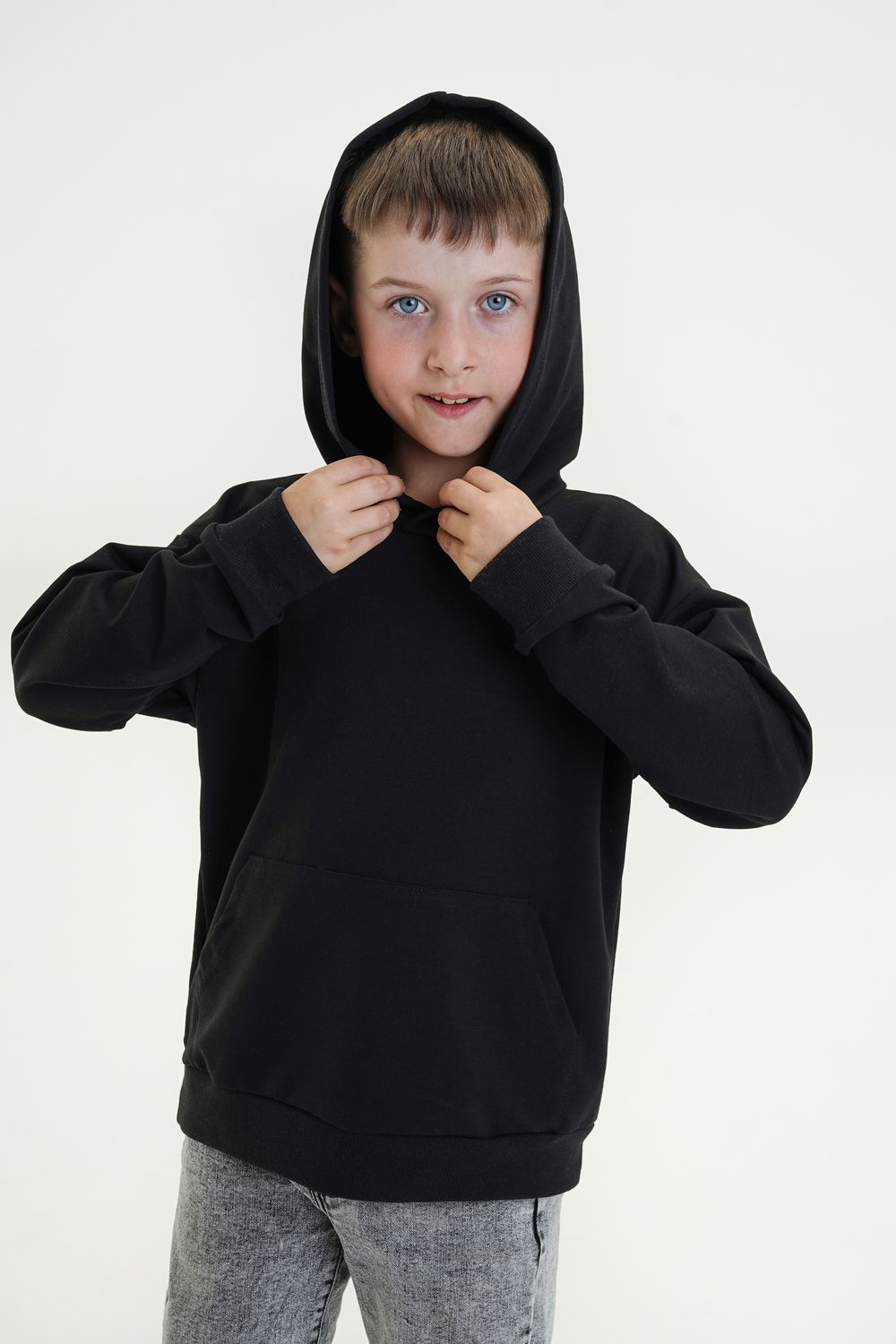 Толстовка для мальчиков и девочек младшего и старшего школьного возраста, из трикотажного полотна футер с лайкрой, кулирная гладь и кашкорсе. Толстовка свободного кроя, прямого силуэта, стиль оверсайз, с капюшоном. Спереди настрочен карман - кенгуру. Рукав спущенный на манжете. По низу толстовки пояс. Капюшон на подкладке из трикотажного полотна - кулирная гладь. Манжеты рукавов и пояс выполнены из трикотажного полотна кашкорсе. По краю капюшона проложена отделочная строчка.