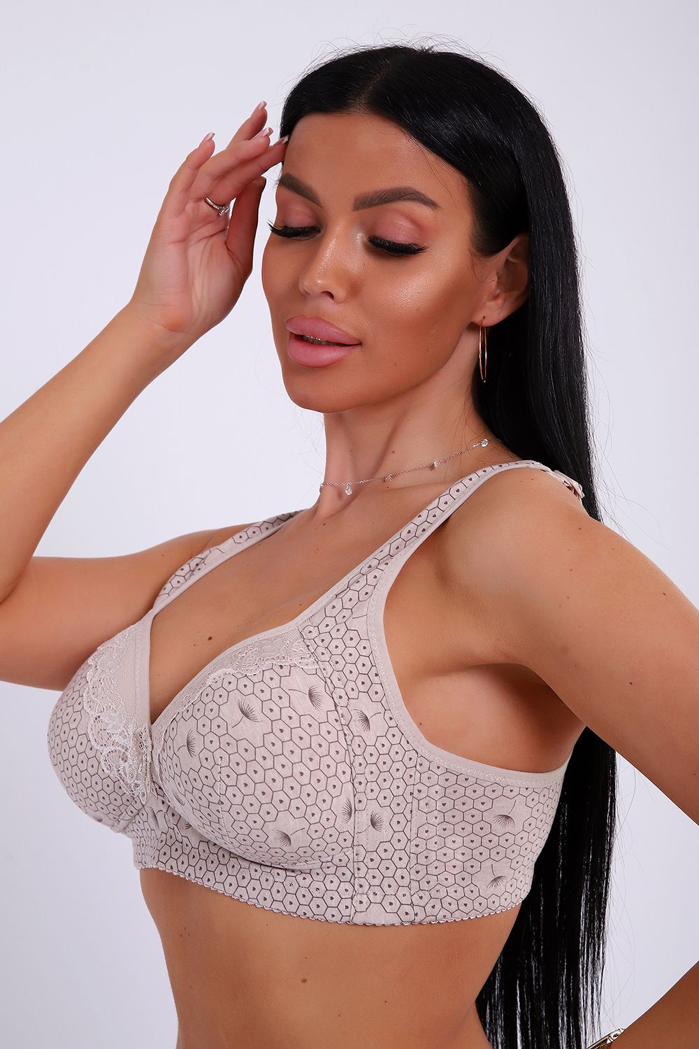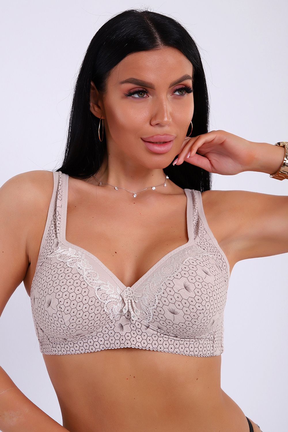 Топ бельевой очень мягкий, хорошо поддерживает грудь. 46 обхват под грудью 80, 48-85, 50-90, 52-95, 54-100. 56-105.
