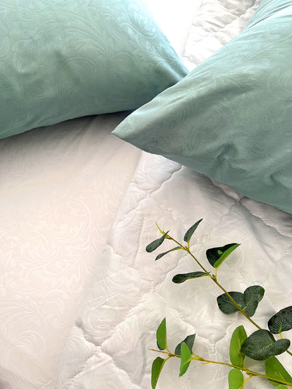 Комплект постельного белья с одеялом New Style КМ-004 мята-белый