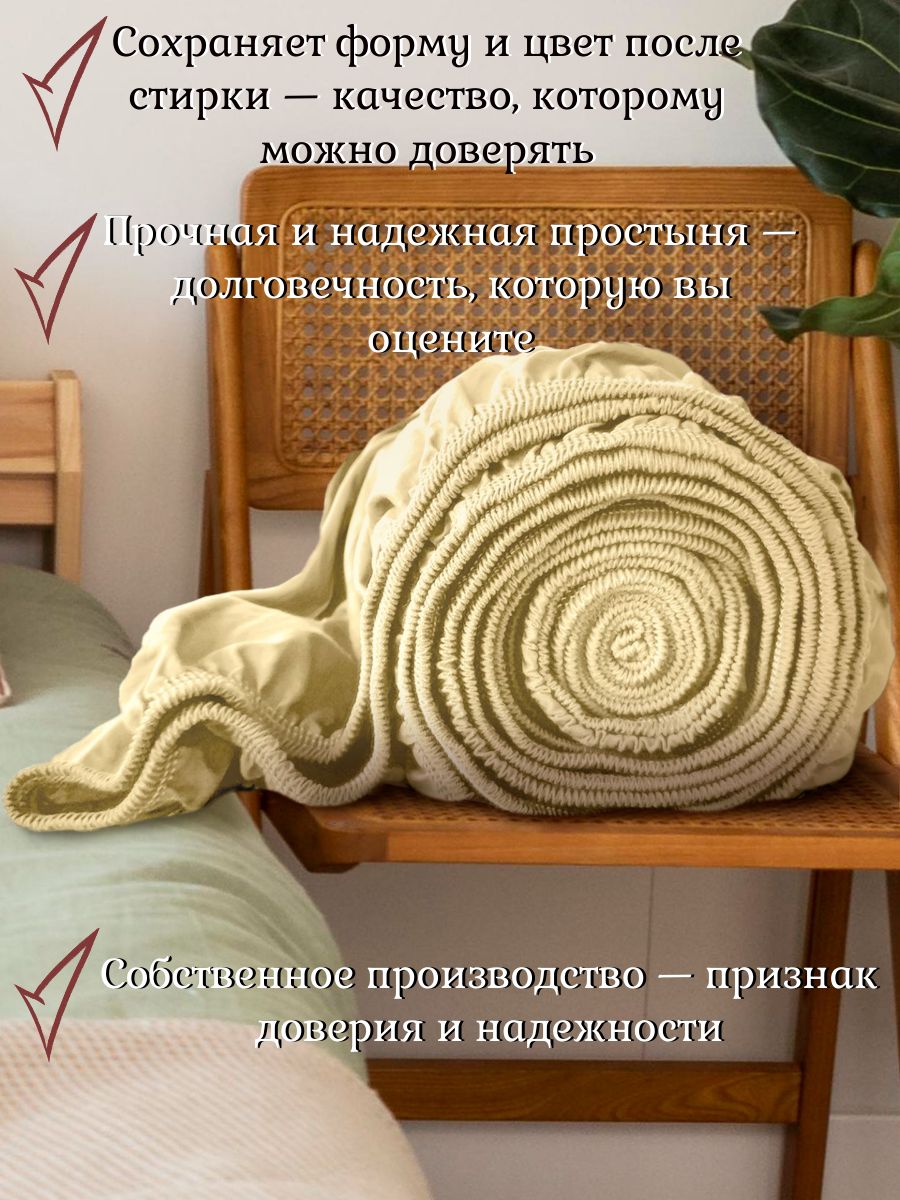 Простынь натяжная трикотажная на резинке изготовлена из качественного трикотажного полотна средней плотности (125 г/м2). Натяжная простынь - это незаменимый атрибут для вашего матраса и комфортной обстановки в спальне. Не секрет, что хороший сон - залог физического и психологического здоровья человека. Поэтому правильно выбирая постельное белье вы улучшите своё самочувствие в течение всего дня. Мягкая простыня поможет вам крепко спать по ночам, не испытывая ощущения дискомфорта. Сделанные из натурального хлопка, простыни избавлены от вредных химических веществ и полностью гипоаллергенны. Ткань трикотаж приятна на ощупь и обладает дышащим эффектом, благодаря которому вам будет прохладно летом и тепло зимой. Яркие простыни на резинке по периметру прекрасно впишутся в интерьер любой спальни. Множество элегантных оттенков позволят вам подобрать вам простыню на свой вкус. Разноцветные простыни на резинке станут прекрасным подарком на новый год, день рождения, 8 марта. В нашем ассортименте большой выбор расцветок. Простыня с резинкой имеет полноценный бортик 20 см и подходит для матрасов высотой до 20 см. На более высоких матрасах изделие будет надежно зафиксировано, но не будет покрывать матрас по всей высоте борта. Если ваш матрас выше 15 см, то рекомендуем вам выбрать трикотажную простыню на размер больше. Чтобы определить, какой размер простыни подходит именно вам, следует измерить ширину и длину спального места по крайним точкам. Если размер подобран правильно, то простыню будет легко натянуть на матрас. Простынь с резинкой можно стирать в стиральной машине при температуре до 40 С. Рекомендуется использовать режим "Бережная стирка", жидким средством для стирки и кондиционером для белья. Отжим на минимальных оборотах. Желательно стирать простыню отдельно от других видов тканей, особенно синтетических во избежание образования катышек. Возможна сушка в стиральной машине при невысоких температурах. Трикотажная натяжная простыня представлена в следующих размерах:80х200 см, 90х200 см, 120х200 см, 140х200 см, 160x200см, 180х200 см, 200х200 см. Так же вы можете подобрать трикотажные наволочки в тон к вашей натяжной простыне. Простынь и наволочки прекрасно сочетаются по цвету.