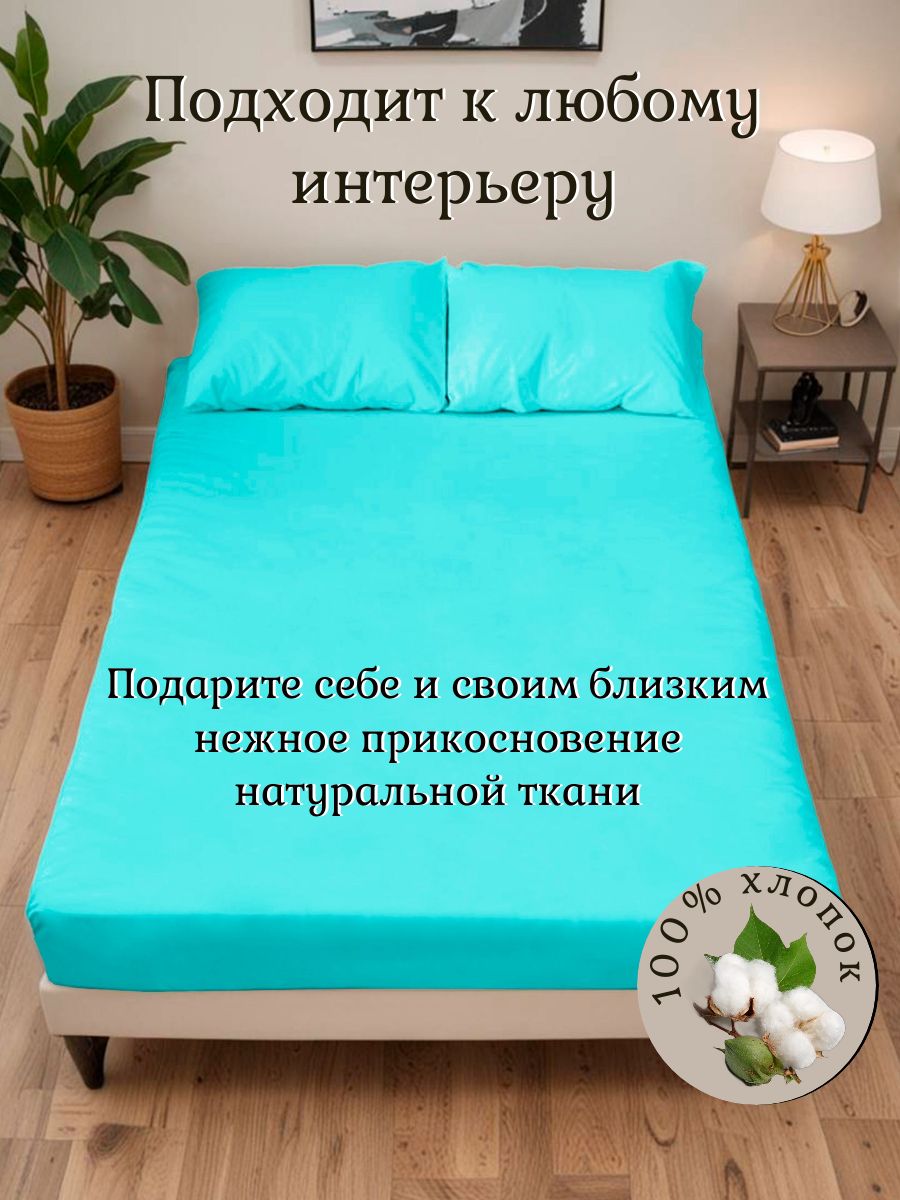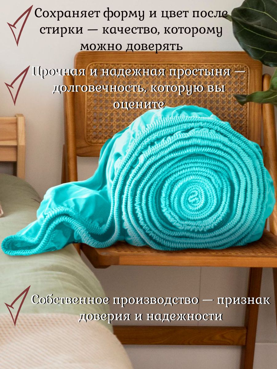 Трикотажная простынь на резинке - бирюза