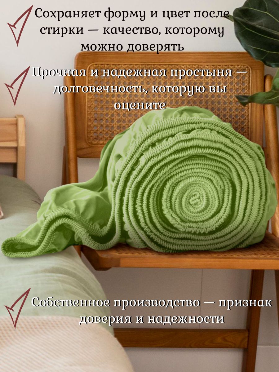 Простынь натяжная трикотажная на резинке изготовлена из качественного трикотажного полотна средней плотности (125 г/м2). Натяжная простынь - это незаменимый атрибут для вашего матраса и комфортной обстановки в спальне. Не секрет, что хороший сон - залог физического и психологического здоровья человека. Поэтому правильно выбирая постельное белье вы улучшите своё самочувствие в течение всего дня. Мягкая простыня поможет вам крепко спать по ночам, не испытывая ощущения дискомфорта. Сделанные из натурального хлопка, простыни избавлены от вредных химических веществ и полностью гипоаллергенны. Ткань трикотаж приятна на ощупь и обладает дышащим эффектом, благодаря которому вам будет прохладно летом и тепло зимой. Яркие простыни на резинке по периметру прекрасно впишутся в интерьер любой спальни. Множество элегантных оттенков позволят вам подобрать вам простыню на свой вкус. Разноцветные простыни на резинке станут прекрасным подарком на новый год, день рождения, 8 марта. В нашем ассортименте большой выбор расцветок. Простыня с резинкой имеет полноценный бортик 20 см и подходит для матрасов высотой до 20 см. На более высоких матрасах изделие будет надежно зафиксировано, но не будет покрывать матрас по всей высоте борта. Если ваш матрас выше 15 см, то рекомендуем вам выбрать трикотажную простыню на размер больше. Чтобы определить, какой размер простыни подходит именно вам, следует измерить ширину и длину спального места по крайним точкам. Если размер подобран правильно, то простыню будет легко натянуть на матрас. Простынь с резинкой можно стирать в стиральной машине при температуре до 40 С. Рекомендуется использовать режим "Бережная стирка", жидким средством для стирки и кондиционером для белья. Отжим на минимальных оборотах. Желательно стирать простыню отдельно от других видов тканей, особенно синтетических во избежание образования катышек. Возможна сушка в стиральной машине при невысоких температурах. Трикотажная натяжная простыня представлена в следующих размерах:80х200 см, 90х200 см, 120х200 см, 140х200 см, 160x200см, 180х200 см, 200х200 см. Так же вы можете подобрать трикотажные наволочки в тон к вашей натяжной простыне. Простынь и наволочки прекрасно сочетаются по цвету.