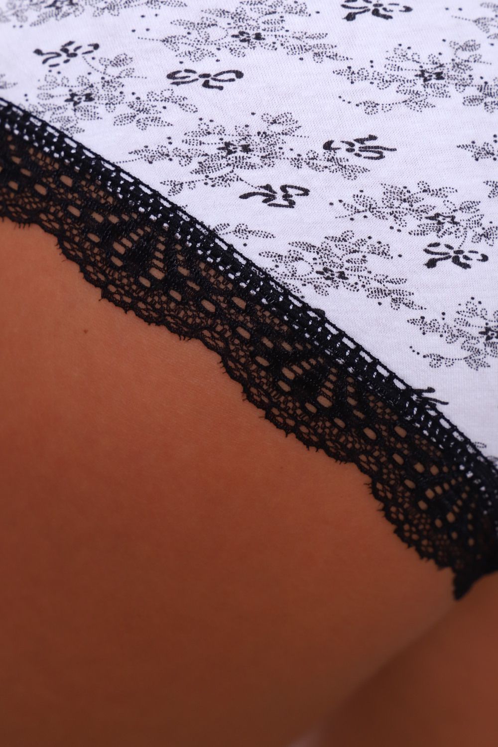 Повседневные трусики выполнены из 95% Бамбука и 5% Спандекса. Трусики дополнены узким и мягким кружевом. Производство Китай.