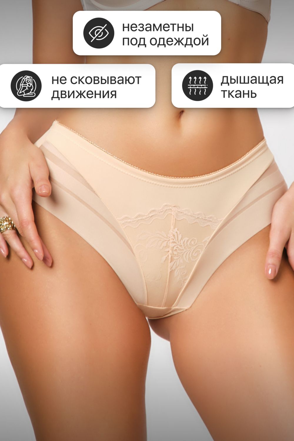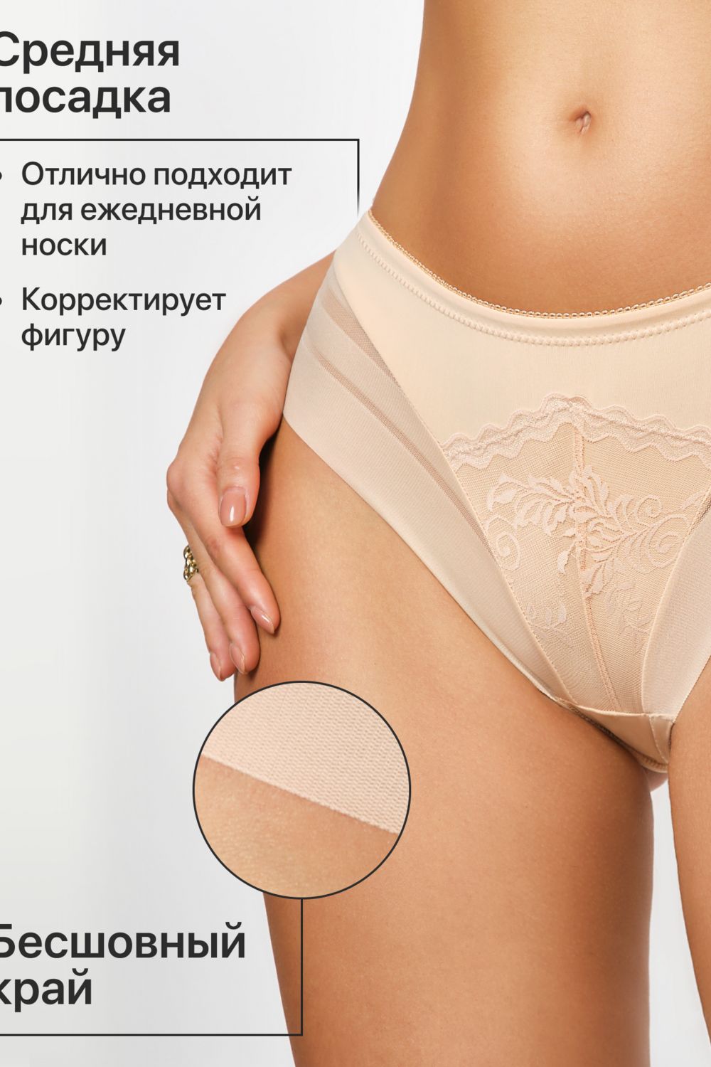 Трусы OIRO 906 слипы бесшовные волнистый край 1 шт - бежевый