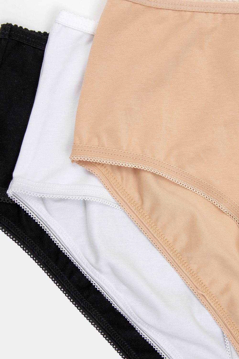 Набор (мультипак) из трех пар женских трусов. Универсальные и максимально удобные трусы женские с высокой посадкой из хлопка. Натуральный материал высочайшего качества: мягкий, дышащий, гипоаллергенный и долговечный, сохраняет вид даже после многочисленных стирок и обеспечивает чувство полного комфорта на протяжении всего дня. Трусы макси женские благодаря продуманной анатомической конструкции, плоским швам и деликатным резиночкам, отлично подходят для повседневной носки и занятий спортом. Пригодятся они и будущим мамам: в этой модели ничего не давит, а значит абсолютно безопасно и комфортно для растущего животика