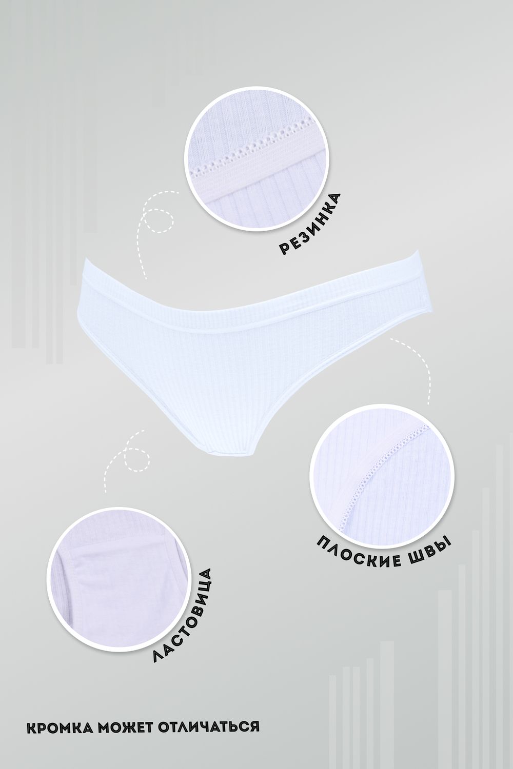Трусы женские в рубчик, выполнены из 95% хлопка и 5% спандекса. В упаковке 2 штуки одного цвета и размера на выбор.
