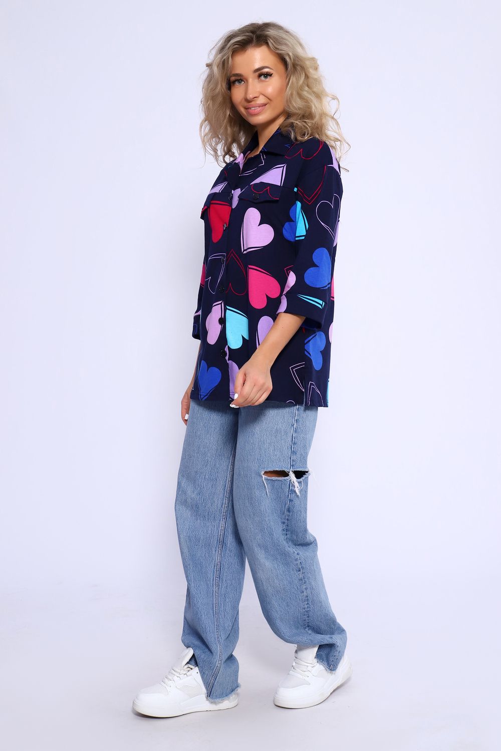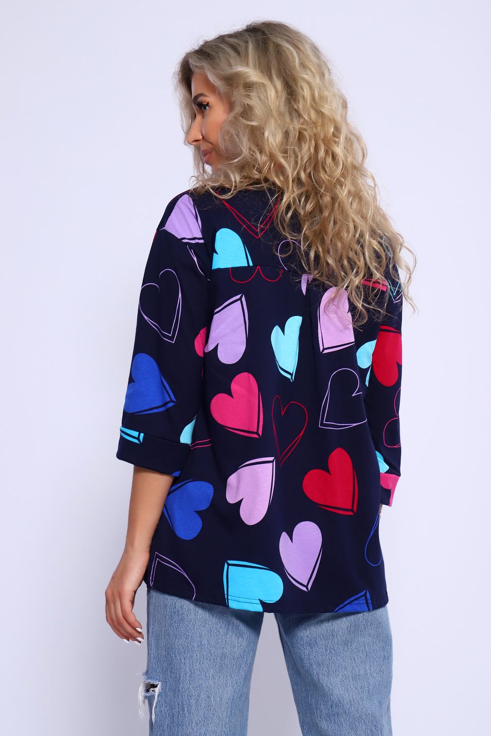 Туника свободного кроя, на пуговицах с рубашечным воротником. Рукава на манжетах длиной 3/4. Полочка с отрезной кокеткой и декоративными клапанами. В боковых швах небольшие разрезы.