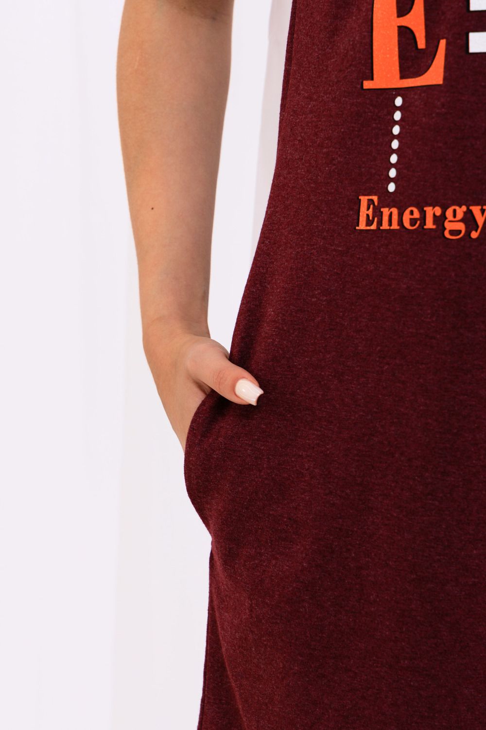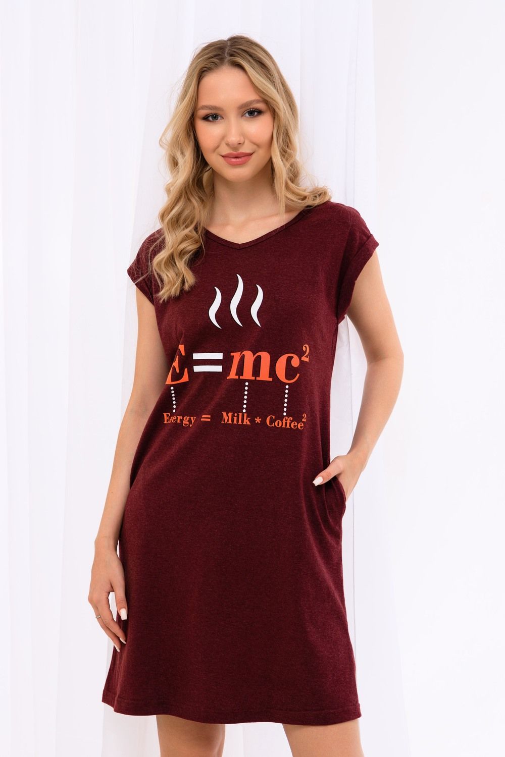 Туника для дома слегка приталенного силуэта с внутренними карманами в боковых швах. На изделии изображена оригинальная печать, где формула энергии обозначает молоко и кофе в квадрате. Очень удобный крой со спущенной проймой. Благодаря полиэстеру в составе, изделие хорошо держит форму.