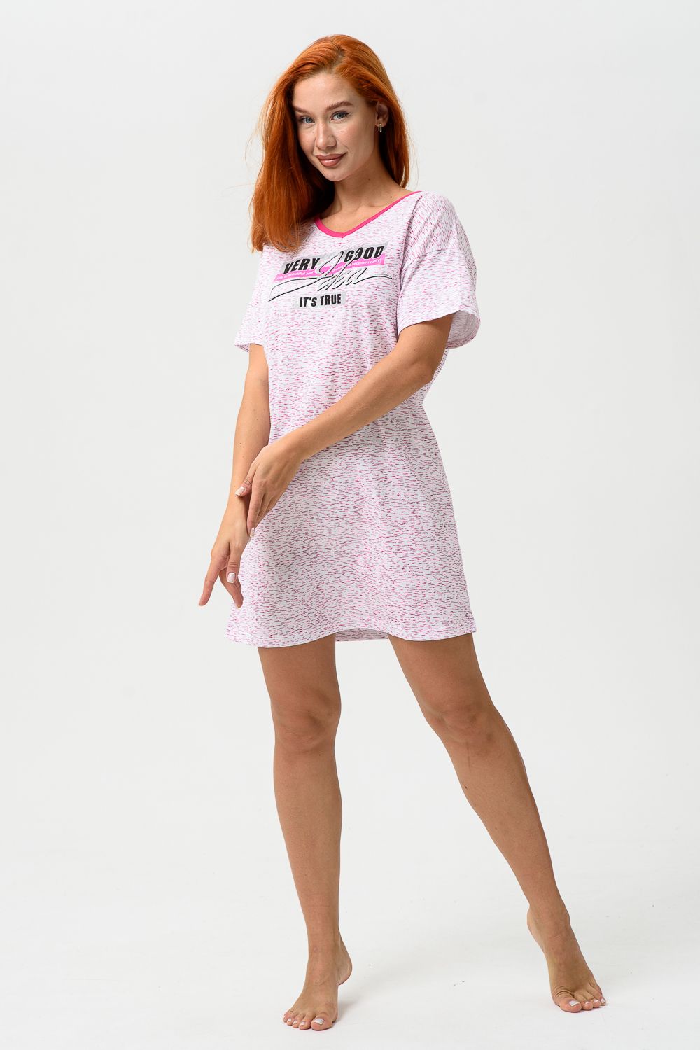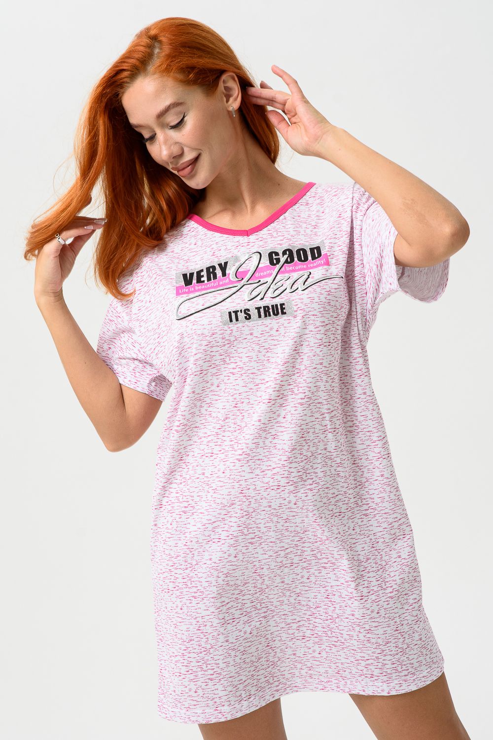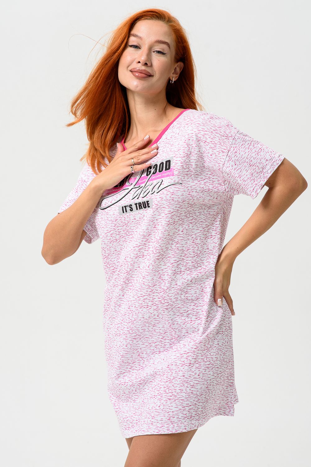 Молодёжная туника в виде удлинённой свободной футболки с современным принтом. Можно использовать в качестве ночной сорочки.