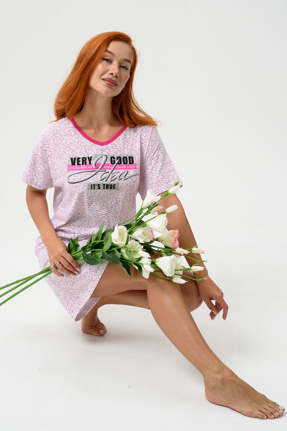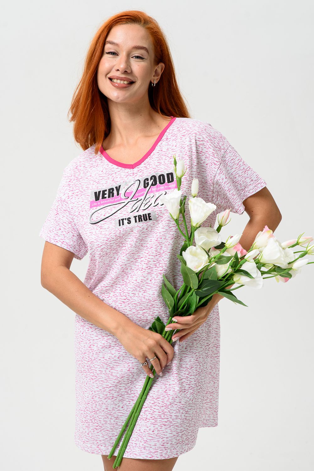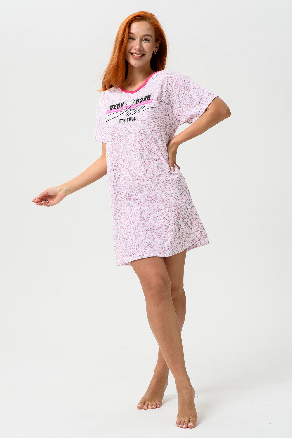 Молодёжная туника в виде удлинённой свободной футболки с современным принтом. Можно использовать в качестве ночной сорочки.