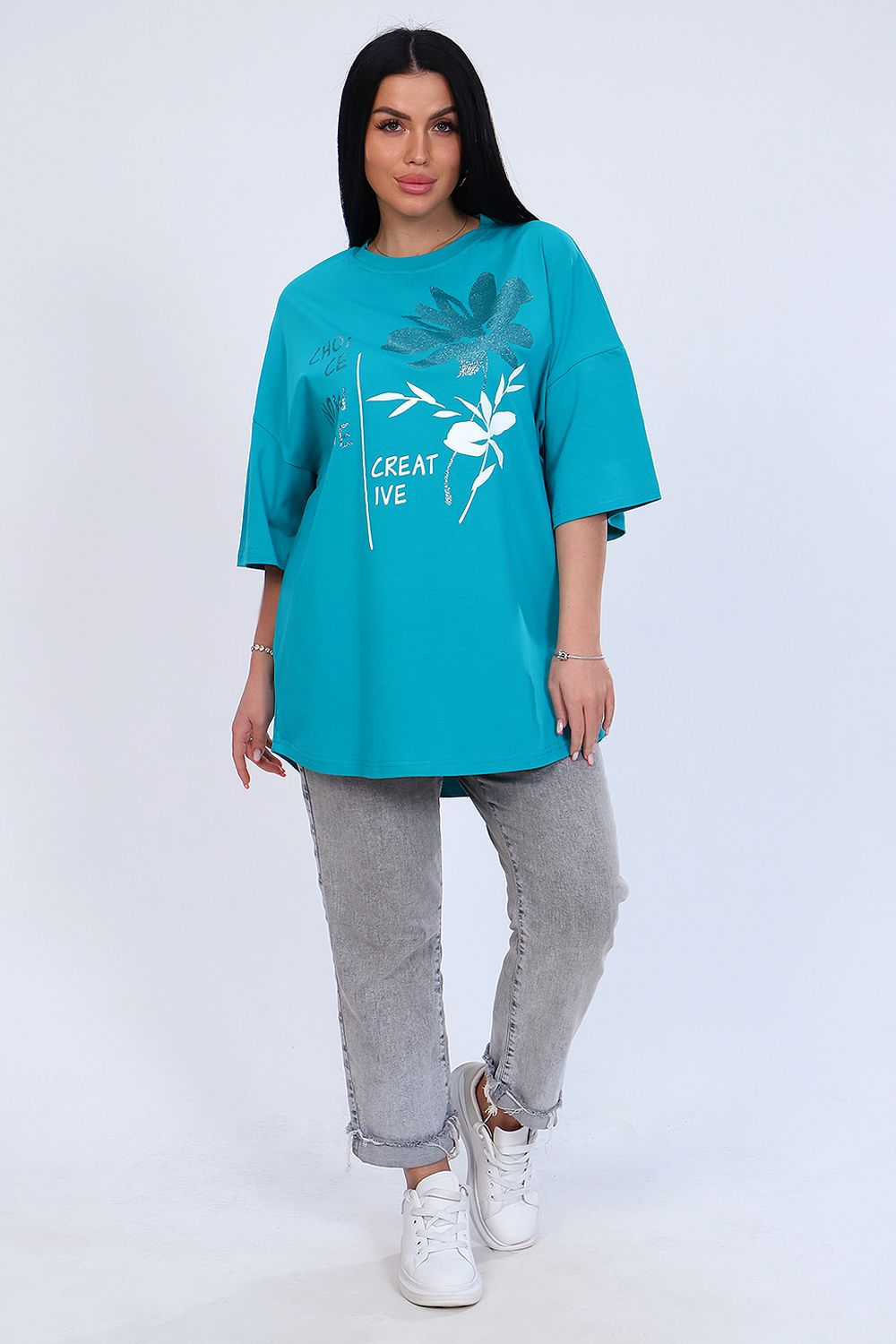 Туника женская выполнена из кулирки с лайкрой в шести цветах. Модель свободного кроя, округлый вырез горловины, спущенный рукав 3/4, слегка расклешен к низу. Оригинальный принт придает изделию индивидуальность. Стильная туника создаст модный и женственный образ на каждый день, скроет недостатки и подчеркнет достоинства фигуры.