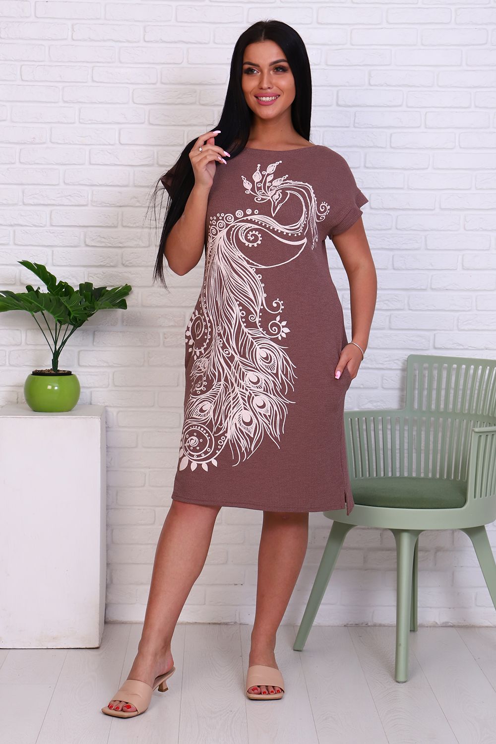 Туника женская с нежным принтом в виде жар-птицы, из трикотажного полотна СОТЫ. Модель полуприталенного силуэта, горловина в виде "лодочки" обработана обтачкой, спущенная пройма на широком манжете, в боковых швах удобные карманы. Низ спинки удлинён, по бокам небольшие разрезы. Трикотаж СОТЫ имеет оригинальный рисунок, образованный переплетением волокон, внешне напоминает пчелиные соты. Полотно мягкое, эластичное и прочное, легко стирается, практически не мнётся, не деформируется.