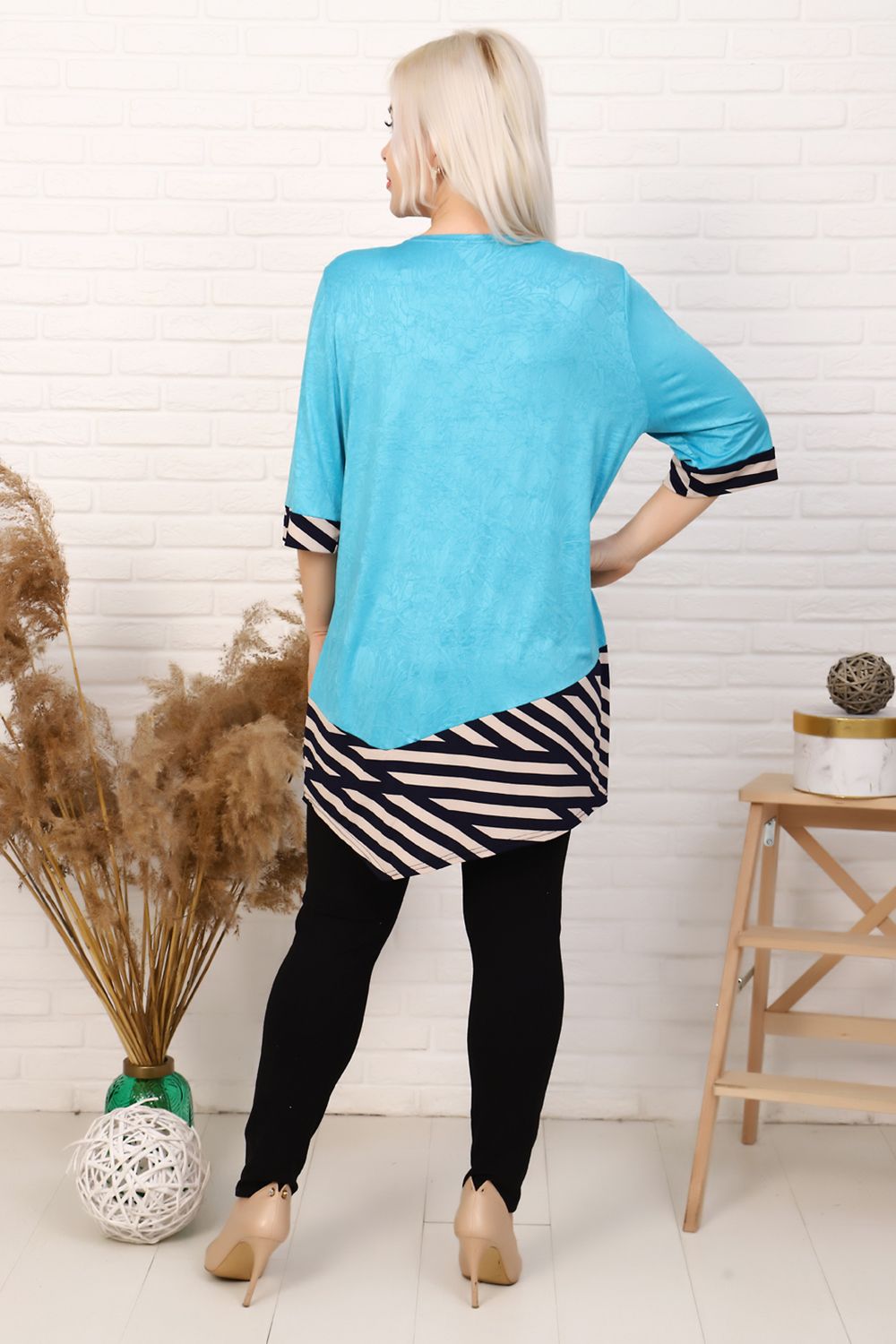 Туника из масла свободного кроя, 3/4 рукав на манжете, V-образная горловина украшена брошью, низ изделия со скошенными углами