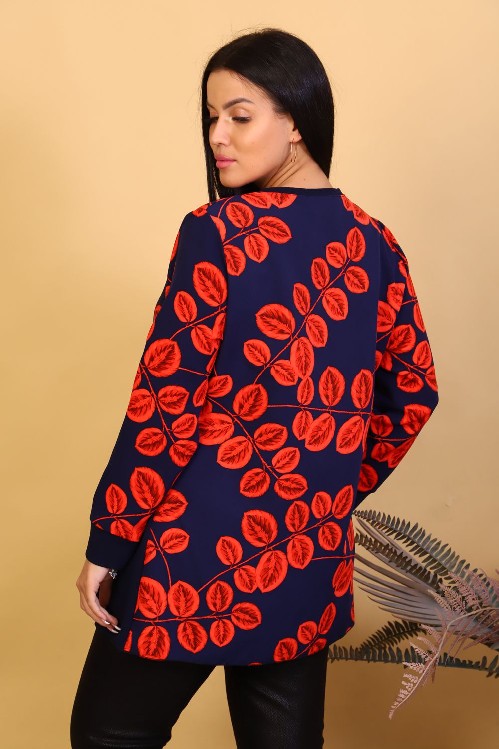 Туника свободного кроя. Округлая горловина отделана кантом. Длинный рукав на манжете. На передней полочке от линии талии с боку присборена вставка. Спереди декоративные пуговицы. Очень удобная и красивая.