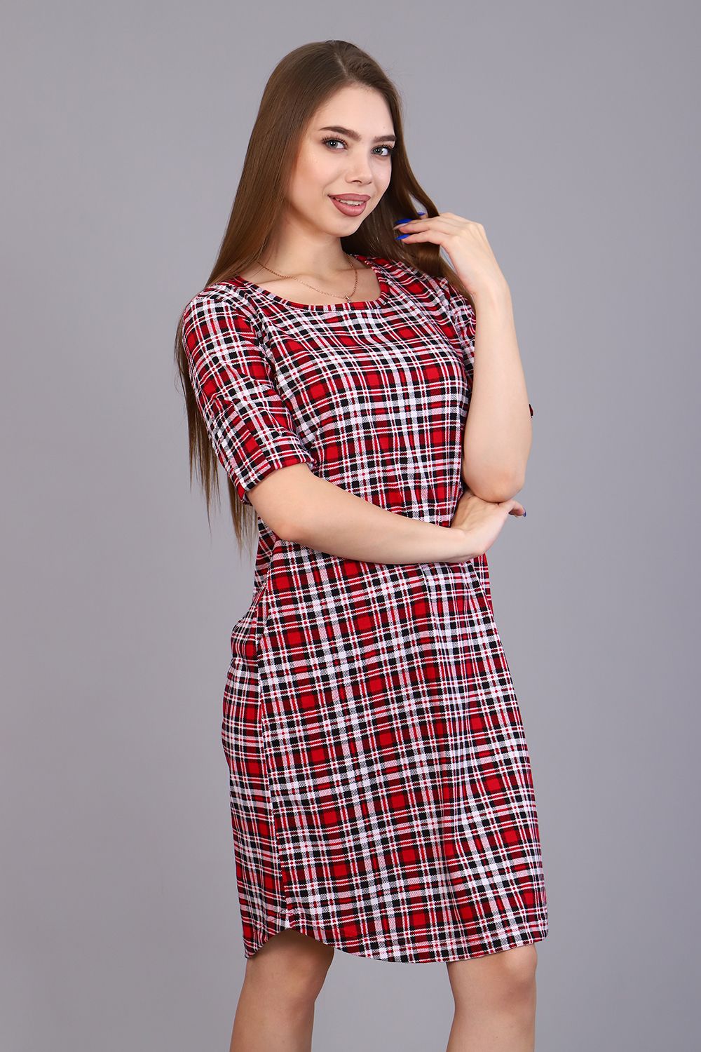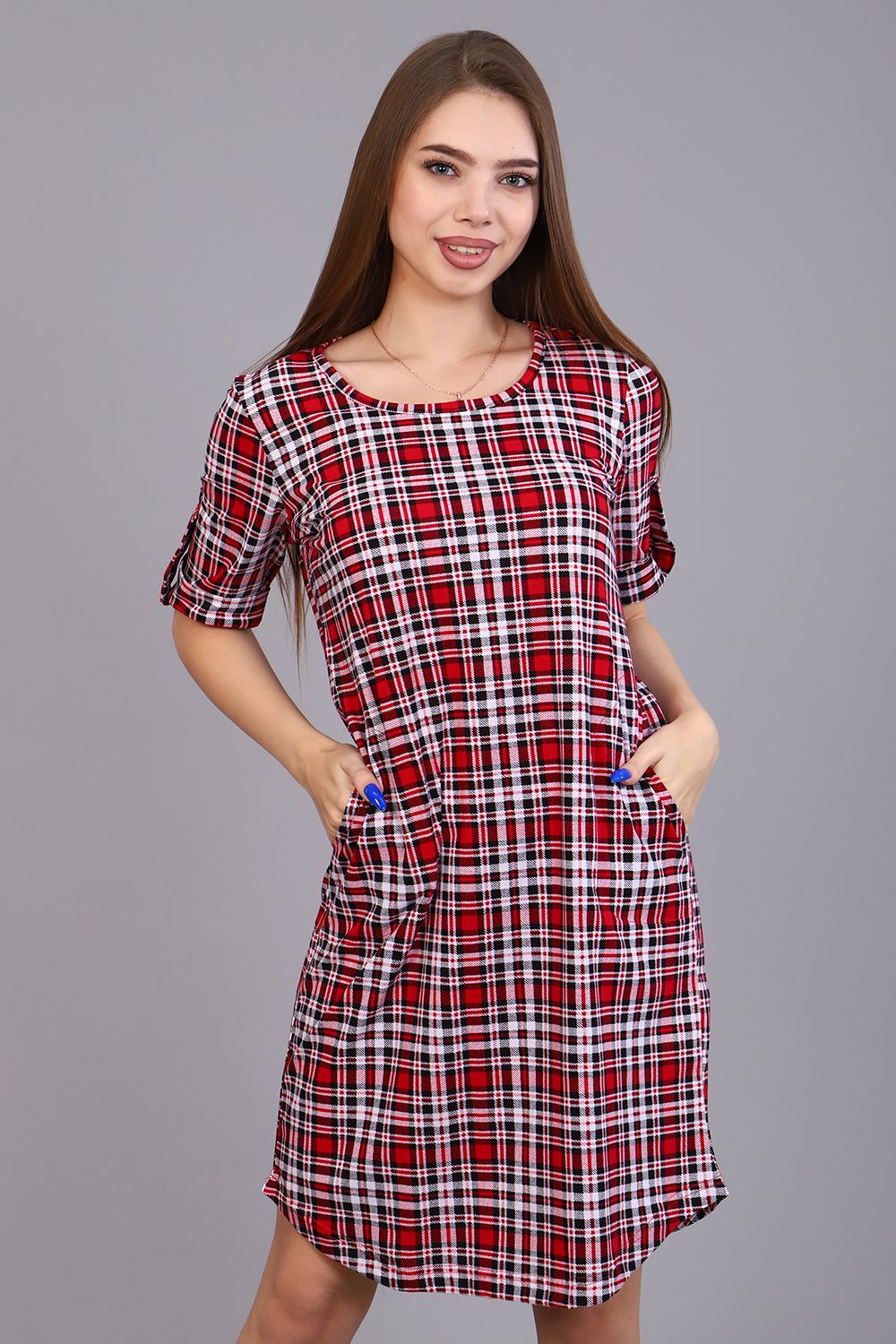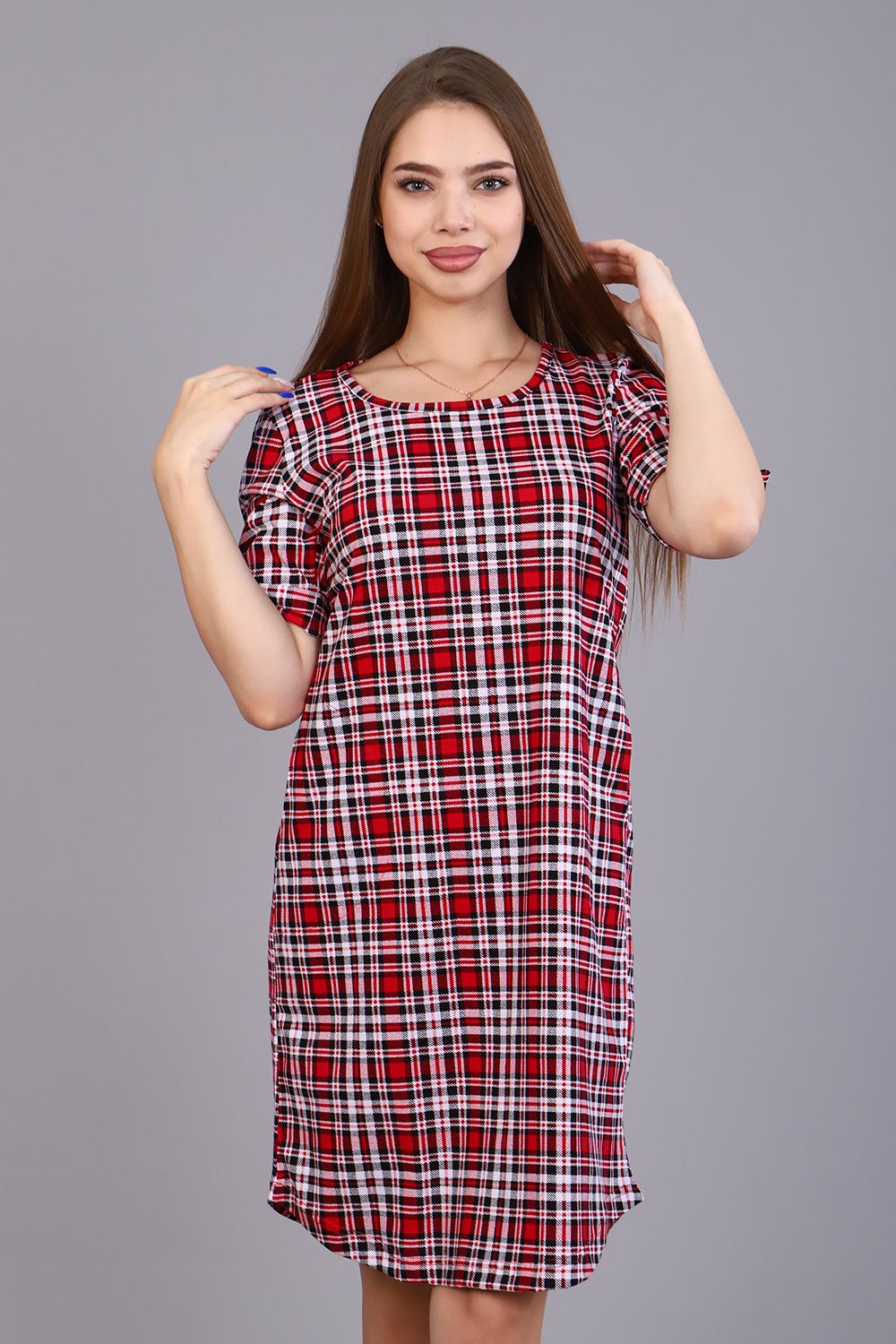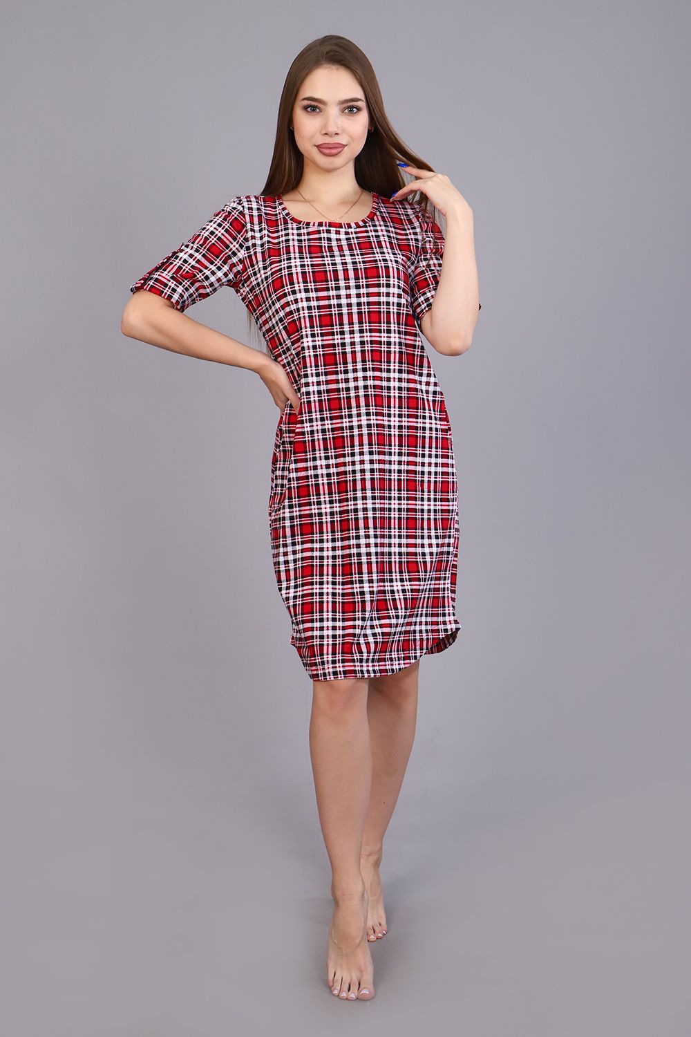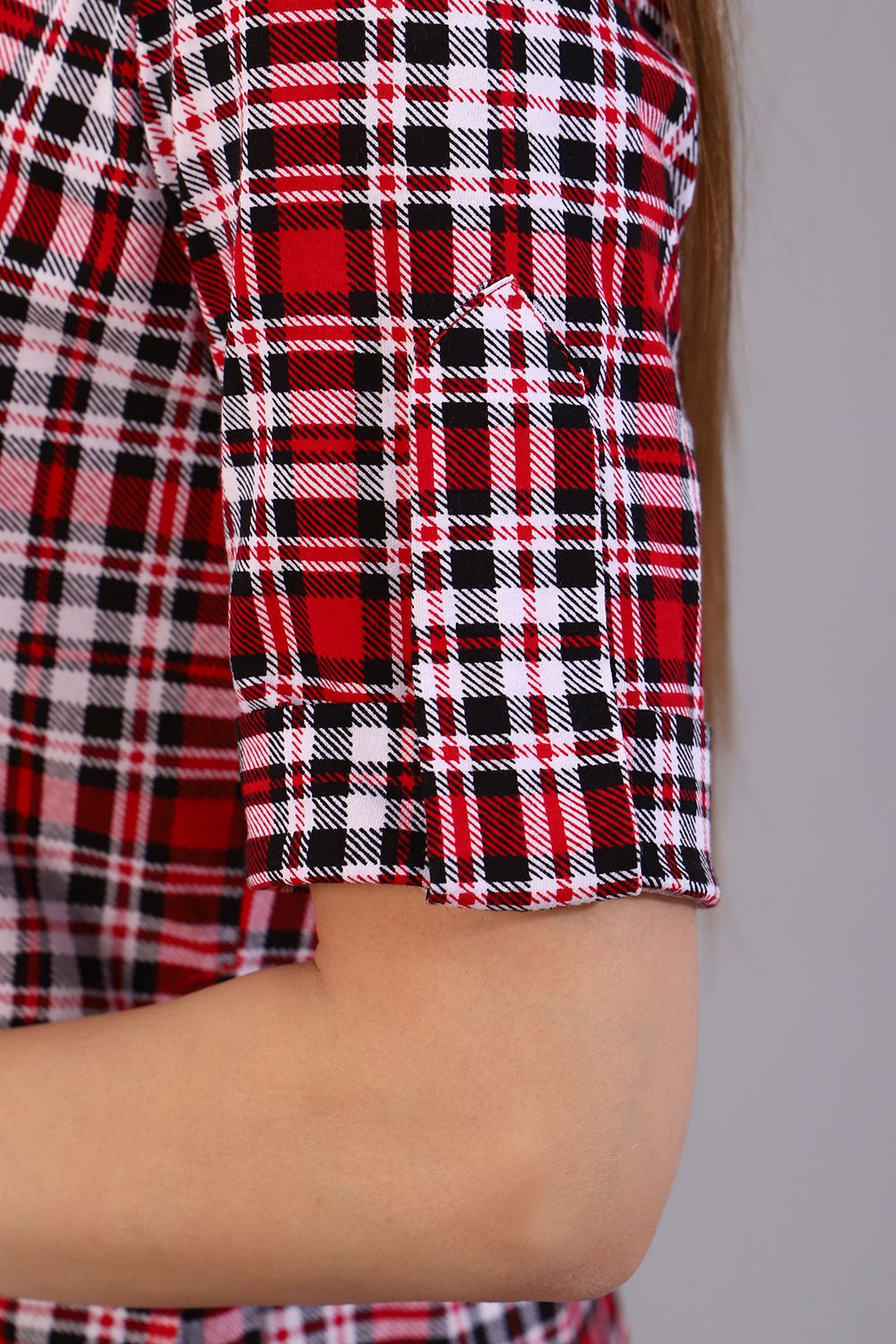 Домашняя туника полуприлегающего силуэта с короткими рукавами и отворотными манжетами удерживаемыми декоративными патами. Вырез горловины круглый. Спинка со встречной складкой посередине и отрезной кокеткой. Низ изделия фигурный.