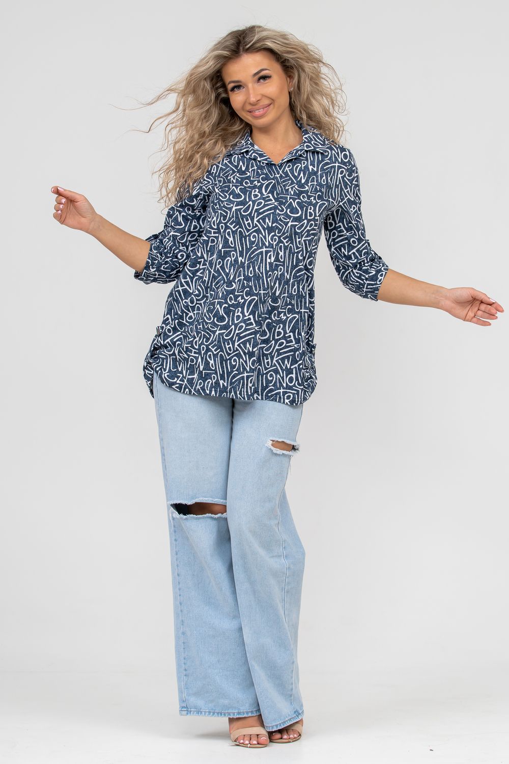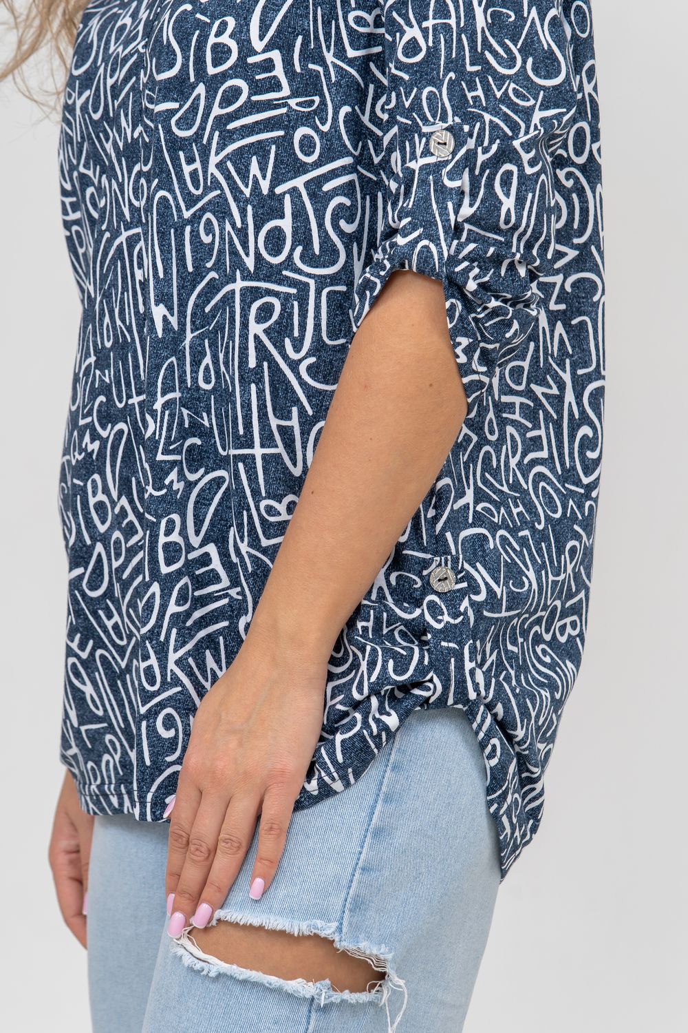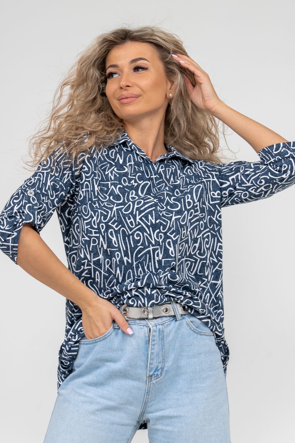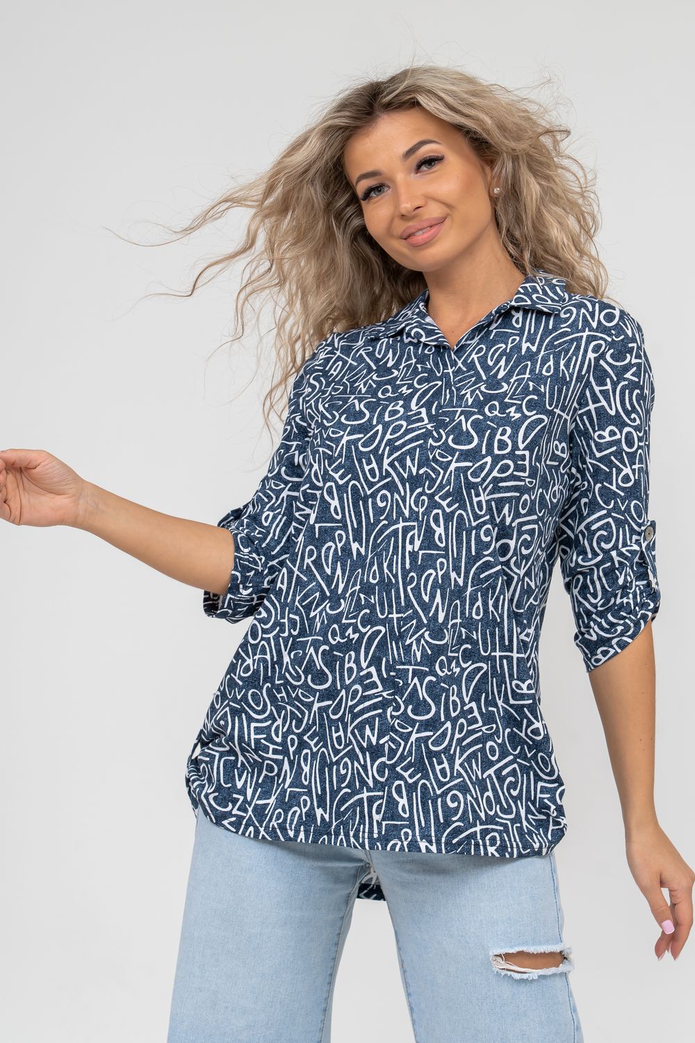 Женская туника свободного силуэта выполнена из 100% хлопчатобумажного полотна под джинс. Модель дополняет рубашечный воротник, паты на рукавах и по низу изделия, закреплённые декоративными пуговицами. Стильная и современная туника - рубашка будет универсальным видом одежды в гардеробе каждой женщины.