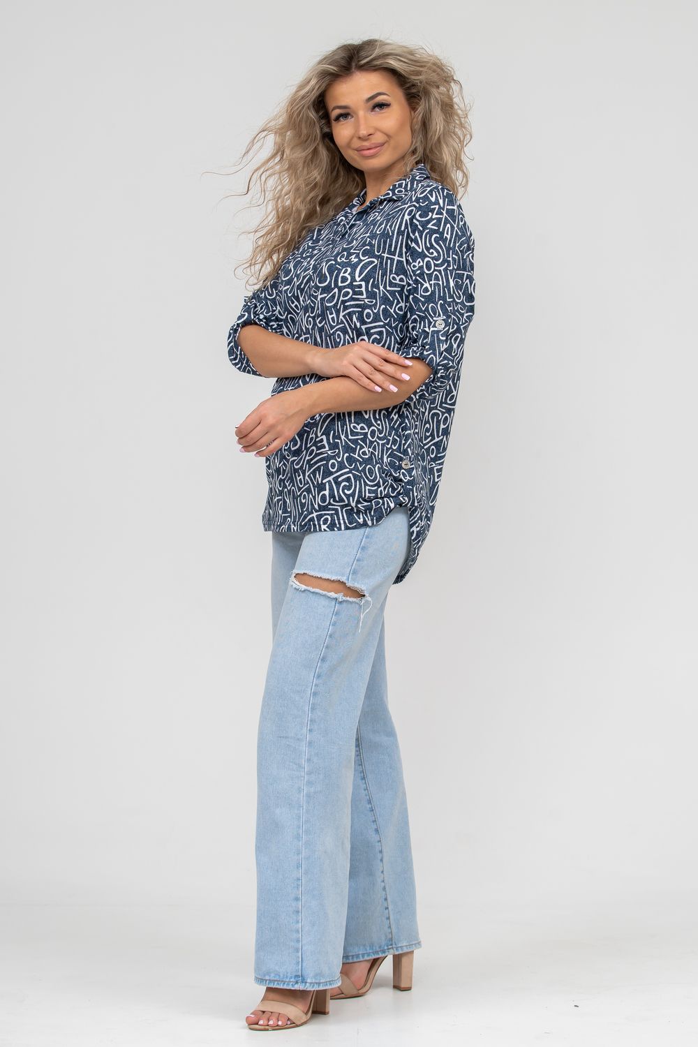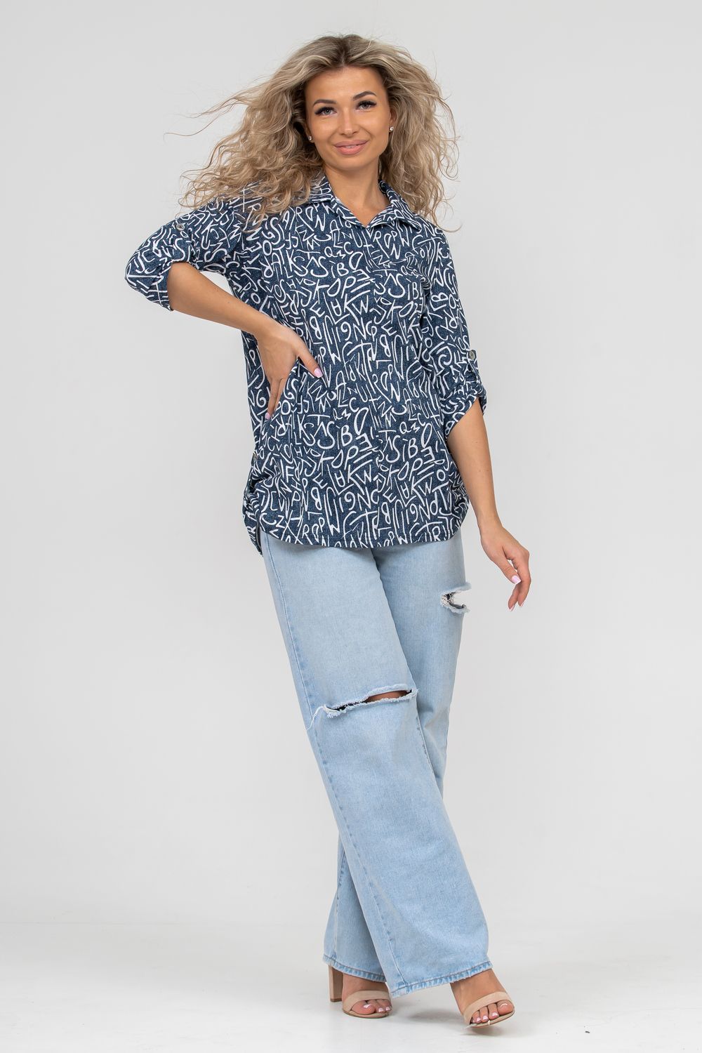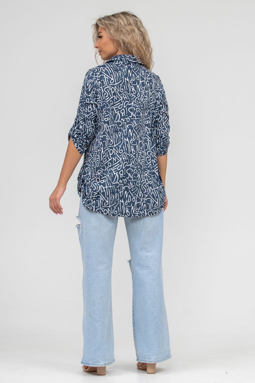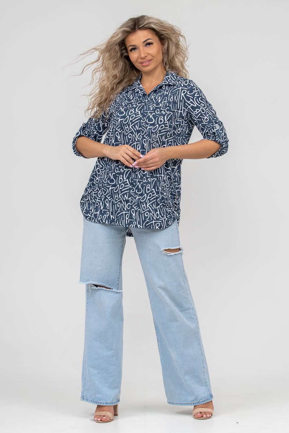 Женская туника свободного силуэта выполнена из 100% хлопчатобумажного полотна под джинс. Модель дополняет рубашечный воротник, паты на рукавах и по низу изделия, закреплённые декоративными пуговицами. Стильная и современная туника - рубашка будет универсальным видом одежды в гардеробе каждой женщины.