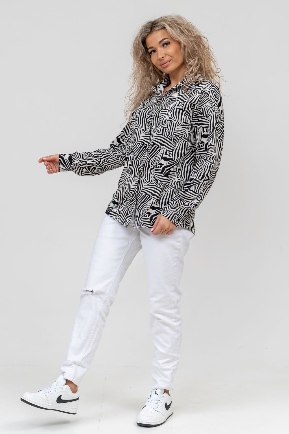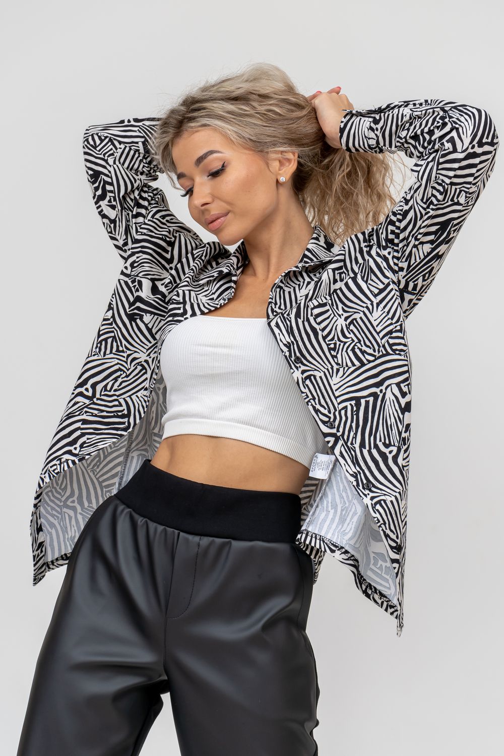 Модная рубашка в стиле oversize выполнена из 100% хлопчатобумажного полотна с трендовым "анималистичным" принтом зебра. Благодаря своей монохроматической цветовой палитре зебра делает любой образ уникальным и выразительным. Черно-белая расцветка будет самой актуальной в этом сезоне. Главное преимущество «зебры» — сочетать ее можно абсолютно с любым оттенком, поэтому вам не придется переживать за целостность образа. Но будьте осторожны — в комплект к моделям с принтом лучше выбирать однотонные вещи, чтобы не перегружать лук. Это одна из самых модных и популярных моделей сезона. Рубашка имеет слегка удлинённую спинку, спущенную линию плечевого шва, классический рубашечный воротник, накладной карман, планку и манжеты на пуговках. За счёт свободного фасона рубашку можно носить с любым типом фигуры, отлично подойдёт для беременных женщин, а также кормящих мам. Женская хлопковая рубашка идеальна как для лета, так и для прохладного вечера. С помощью такой рубашки Вы можете создать деловой образ или летний расслабленный. А также отправиться на праздник или вечеринку, на прогулку, на пляж или провести незабываемый вечер дома. Модель такого плана идеально подойдёт и в качестве подарка для себя и своих любимых! Современная туника - это почти неотъемлемая часть гардероба любой женщины, которая сделает Вас неотразимой в любой ситуации.