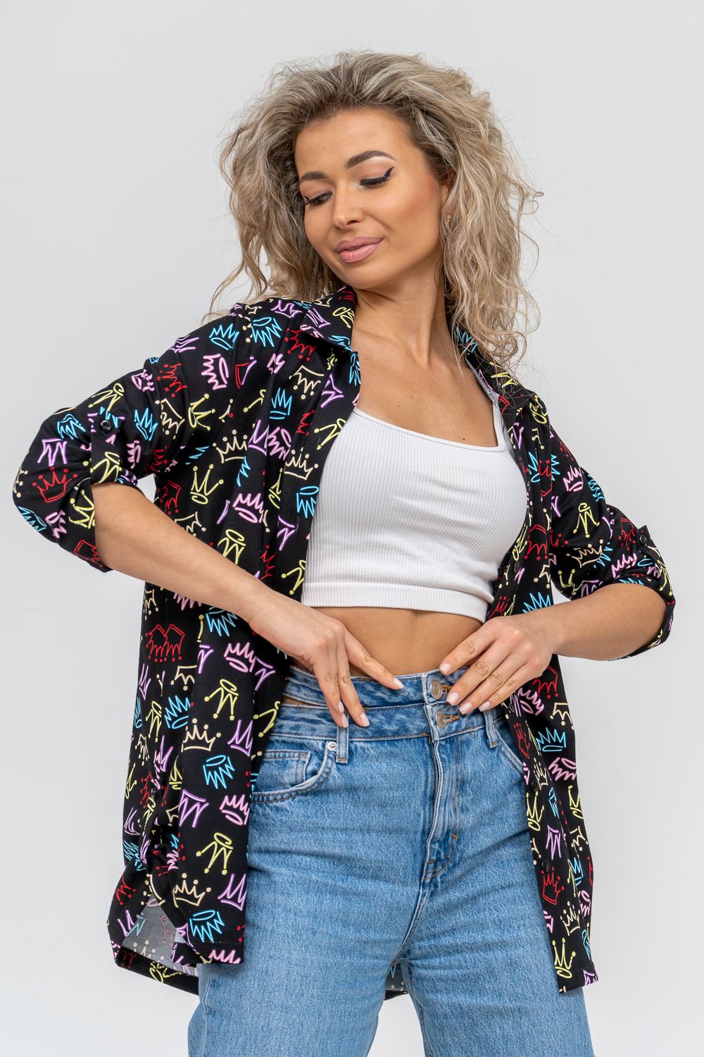 Женская стильная туника - рубашка выполнена из 100% хлопчатобумажного полотна. Новый дизайн делает изделие модным, легким и приятным на ощупь, не сковывает движения, поэтому отлично подойдет как для школы, дома и работы, так и для повседневной носки. Модель дополняет рубашечный воротник, паты и планка с расстёгивающимися пуговицами, делая её более комфортной. Женская свободная рубашка не сковывает движения, поэтому отлично подойдет будущим мамам, беременным женщинам и кормящим. Расстёгивающаяся планка сделает кормление малыша удобным и комфортным, а за счет качественного хлопкового трикотажа еще и безопасным и экологичным. Мы специально разработали рубашку для женщин большого размера. Большие размеры любят и подростки, которые предпочитают вещи оверсайз (oversize). Рубашка женская - это базовая вещь в гардеробе девушки или женщины , является идеальным вариантом для офиса, работы, школы и путешествий. Удлиненную рубашку можно носить дома и в качестве повседневной одежды. Классическая рубашка может быть не только белого или черного цветов, пробуйте разнообразить свой образ вещами с интересным принтом и рисунком. Добавьте в свою жизнь яркости. Рубашка так же будет прекрасно сочетаться с велосипедками, легинсами, джеггинсами или джинсами. Модная рубашка - это тренд сезона и, без сомнения, станет неотъемлемой частью женского гардероба. Она обязательно должна быть у тех, кто хочет не только оставаться в тренде, но и создавать не просто комфортные, а действительно крутые образы на каждый день.