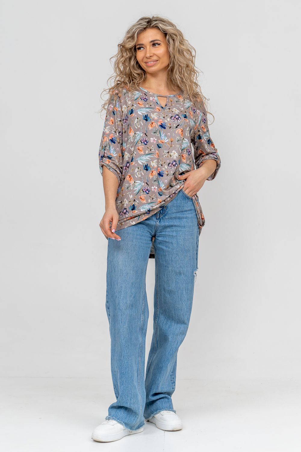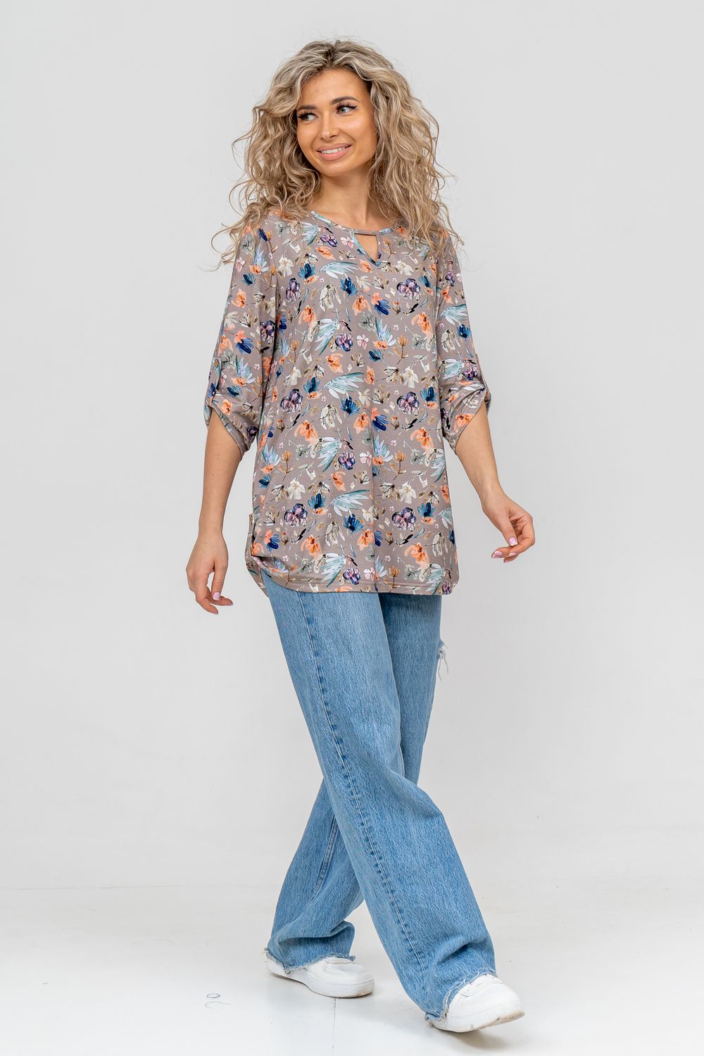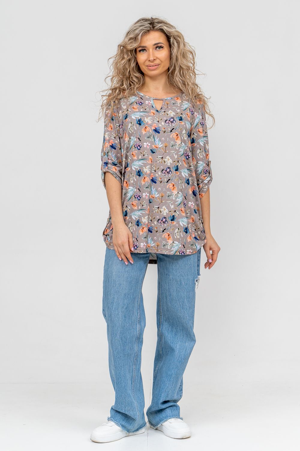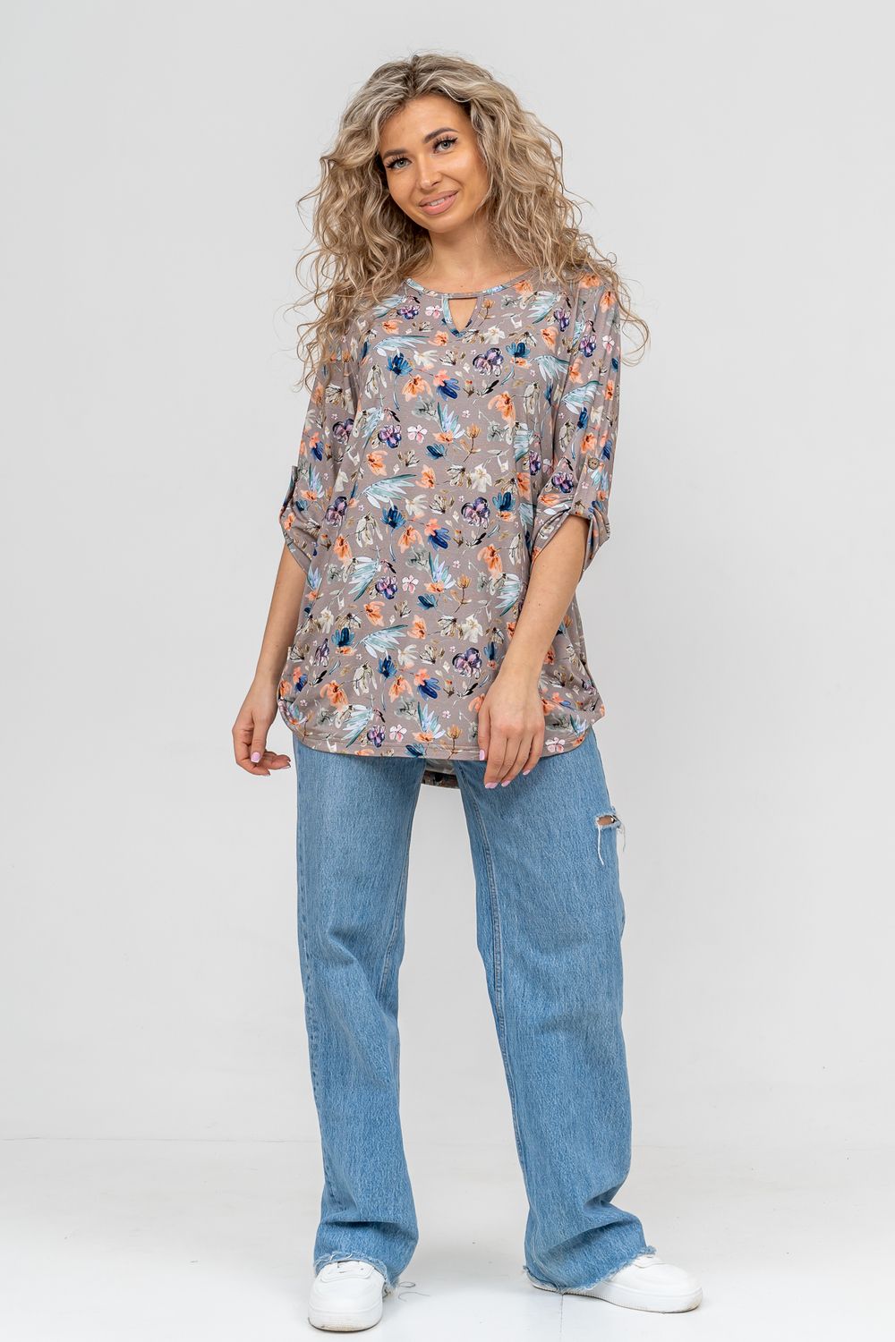 Встречайте! Полюбившаяся всеми туника 36648 по многочисленным просьбам появилась в новых модных расцветках сезона. Женская туника свободного силуэта в стиле oversize выполнена из струящегося нежного вискозного полотна с ярким рисунком. Этот стиль подходит для любой женщины, ведь он может скрыть все недостатки фигуры и подчеркнуть её достоинства. На материале выполнена печать диджитал с чёткой, яркой и чистой цветопередачей. То есть, рисунок печатается специальным оборудованием сразу на полотне без промежуточных носителей. Такие принты не боятся частых стирок, утюжек и не выгорают на солнце. Округлая горловина с треугольным вырезом, паты на рукавах и по низу изделия делают тунику удобной и привлекательной. Большие размеры подчеркнут ваши достоинства и скроют все недостатки фигуры, благодаря своему идеальному крою. Туника женская с рукавом 3/4 не сковывает движения. Одежда из материала такого плана прослужит вам долгое время, не теряя свой цвет и форму. Тунику летнюю можно взять с собой в роддом, в поездку, на отдых в санаторий или будет идеальным вариантом для похода на работу, корпоратив, фотосессию. А также будет отличным подарком для мамы, бабушки, сестры, подруги и себя любимой. А подарить такой сюрприз можно на любой праздник, день рождения или юбилей, новый год или 8 марта. Туника удлиненная женская будет хорошо смотреться как на невысоких, так и на высоких. Современная туника - это почти неотъемлемая часть гардероба любой женщины, которая сделает Вас неотразимой в любой ситуации.