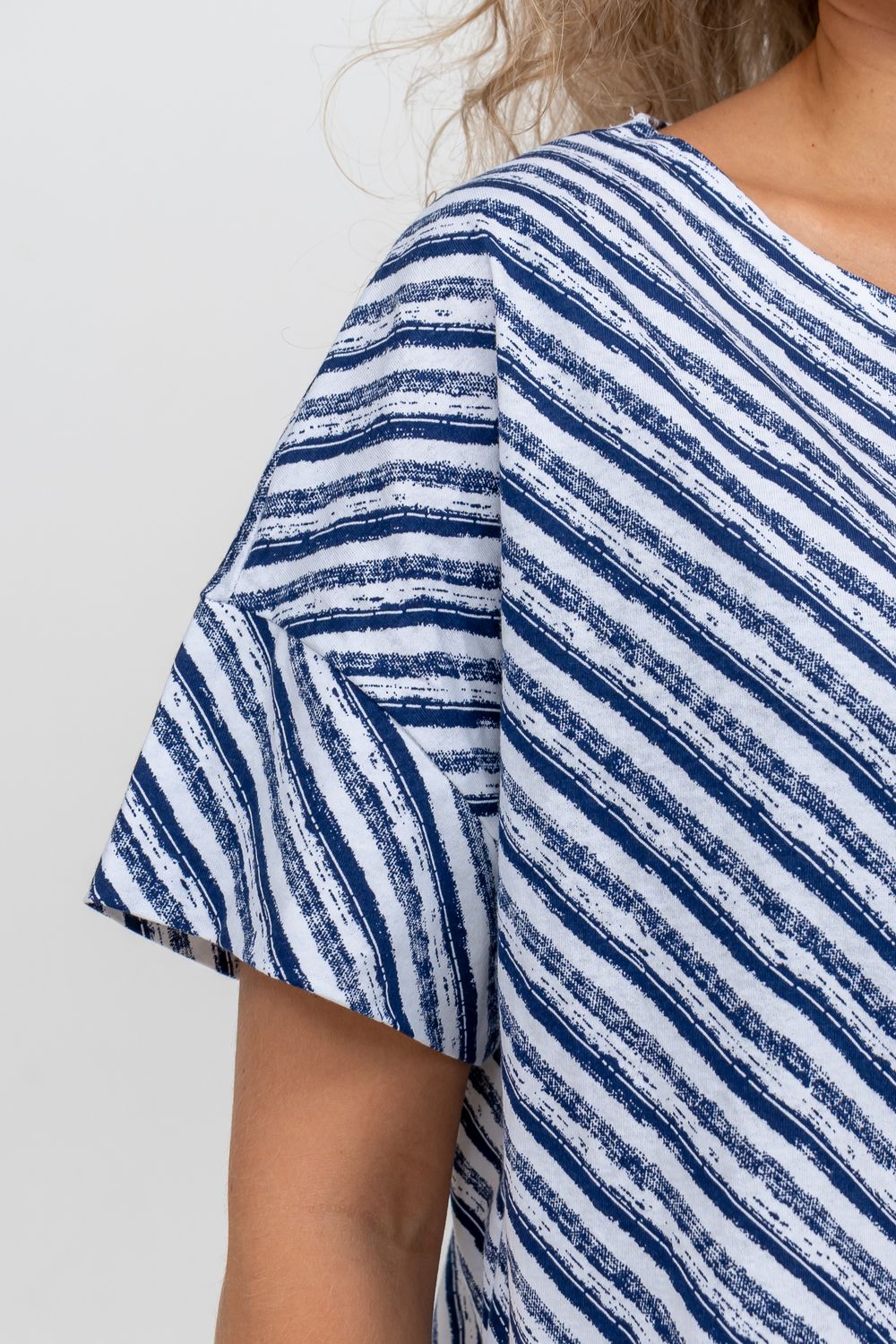 Женская стильная туника выполнена из 100% хлопчатобумажной ткани. Модель в стиле oversize - уютная, комфортная, стильная, подойдёт для повседневной носки, прогулок с ребёнком, в качестве домашней одежды и для отдыха. Мягкий материал приятен к коже и не сковывает движений. Туника с асимметричным низом идеальный вариант на каждый день для женщин, девушек, девочек и подростков. Туника в полоску является популярным направлением у дизайнеров во всем мире. Полосатая летняя туника отлично сочетается с любым низом. Линия плеча спущена. Легко сочетается с лосинами, легинсами и джинсами. А полосатый рисунок ткани отлично скрывает недостатки фигуры и делает её стройнее. Модель такого плана также идеально подойдёт и в качестве подарка. Порадуйте себя и своих близких!